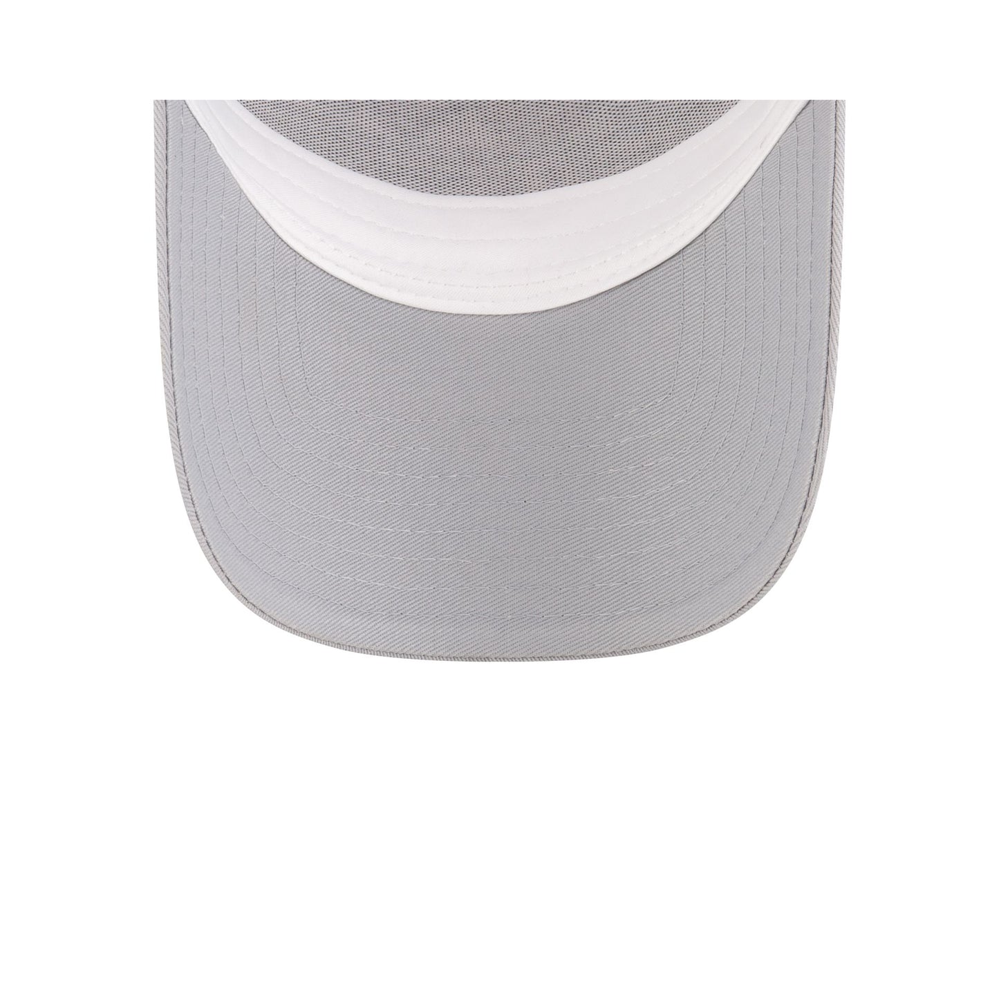 The New Era Cap Gray Rockies 9FORTY A-Frame Trucker features an embroidered Rocky Mountains patch at the front panels with a mesh back, a snapback closure at the rear, and a gray undervisor.