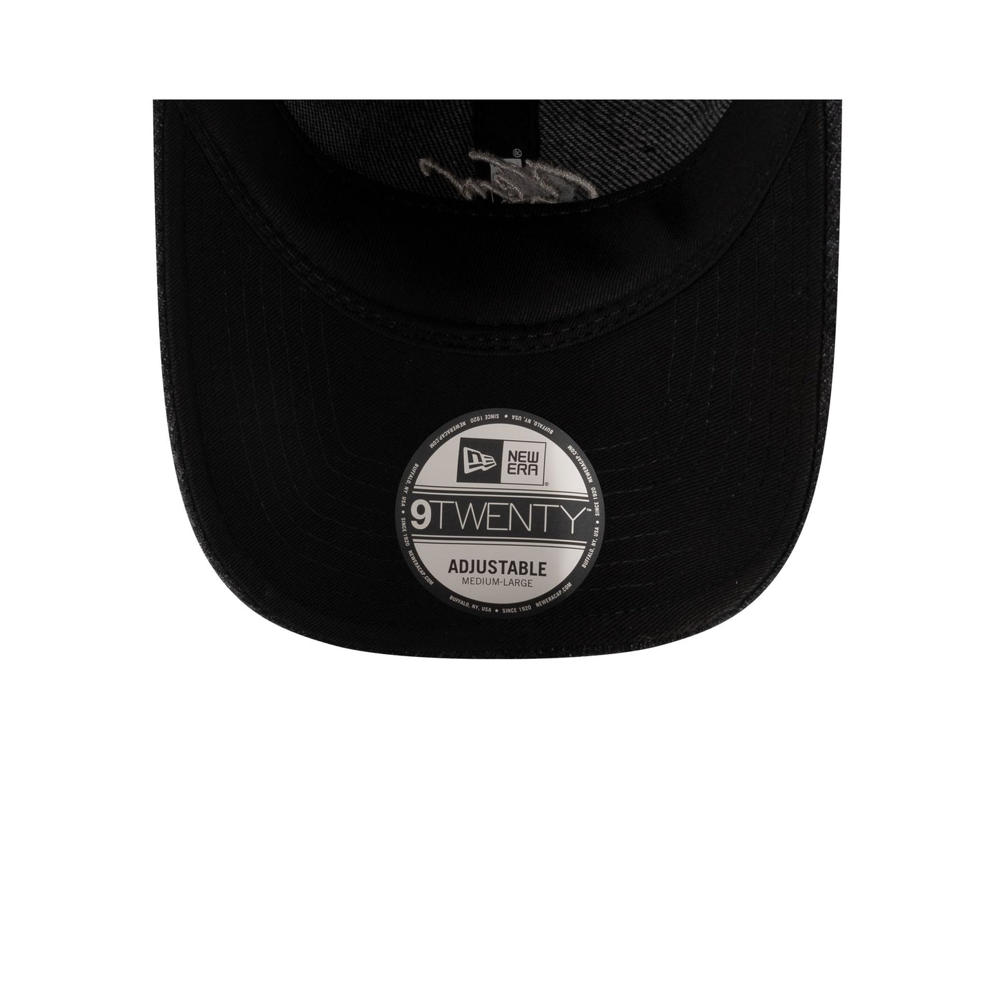 The New Era Cap Handwritten Black Denim 9TWENTY Easy Snap Cap features an embroidered New Era script at the front panels with an adjustable easy snap closure at the rear.