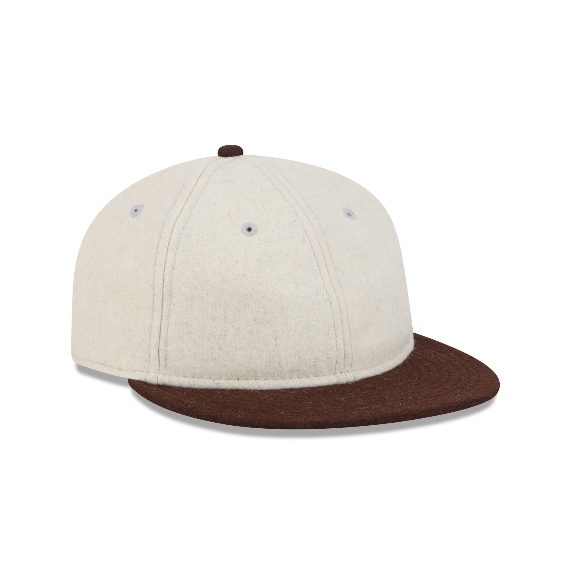 The New Era Cap Heather Oatmeal Melton Wool Retro Crown 59FIFTY Fitted Cap features New Era Flag at the left-wear side with a walnut visor and green undervisor.