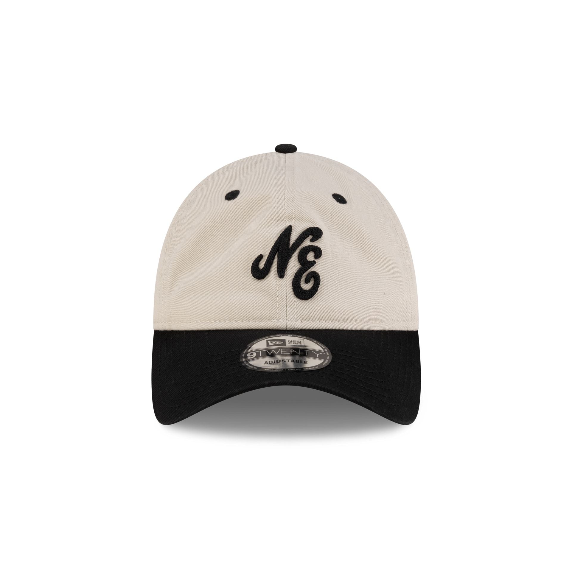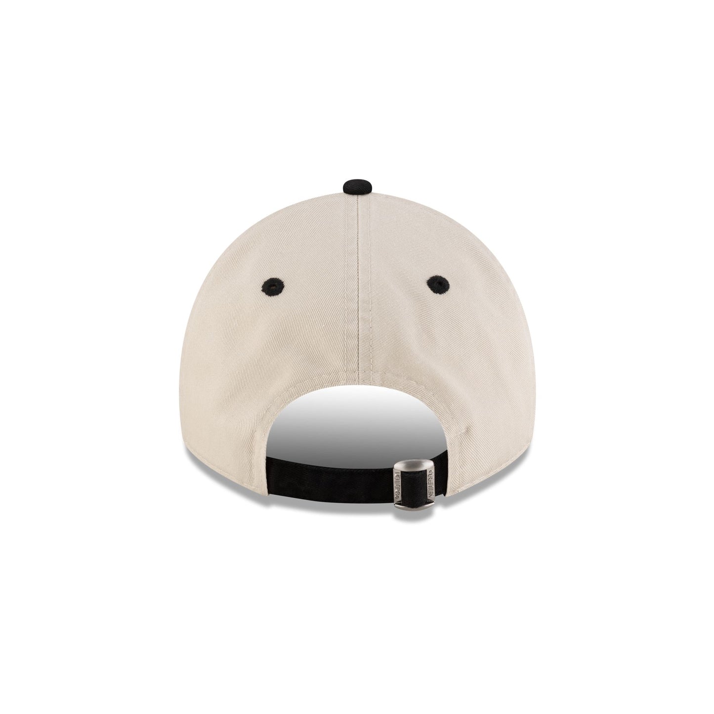 The New Era Cap Heritage Black and Cream 9TWENTY Adjustable Cap features an embroidered New Era logo at the front panels with an adjustable D-Ring closure at the rear and a black visor.