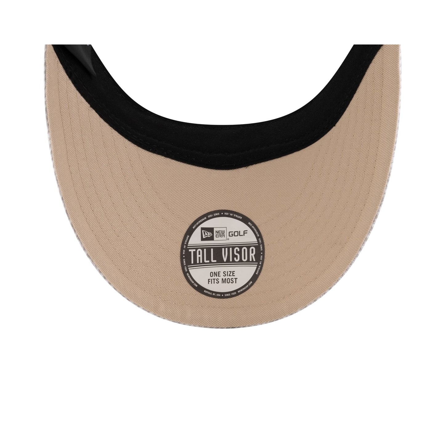 The New Era Cap Houndstooth Beige Visor Adjustable Cap features a woven New Era patch at the front panels with a New Era Golf logo at the right-wear side, a beige undervisor, and an adjustable D-Ring closure at the rear.