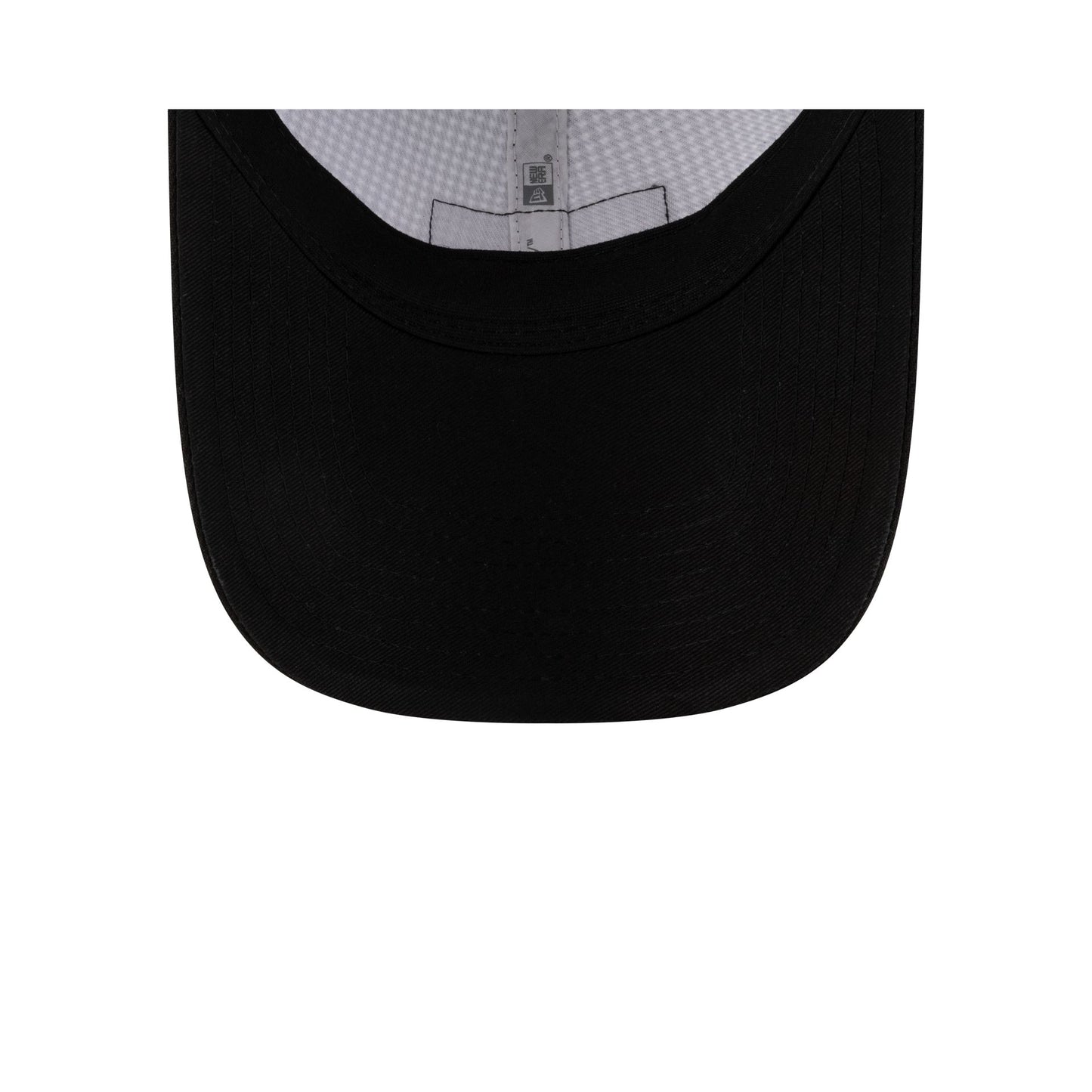 The New Era Cap Houndstooth Black 9TWENTY Adjustable Cap features a woven New Era patch at the front panels with a New Era Golf logo at the right-wear side, a black visor, and an adjustable D-Ring closure at the rear.