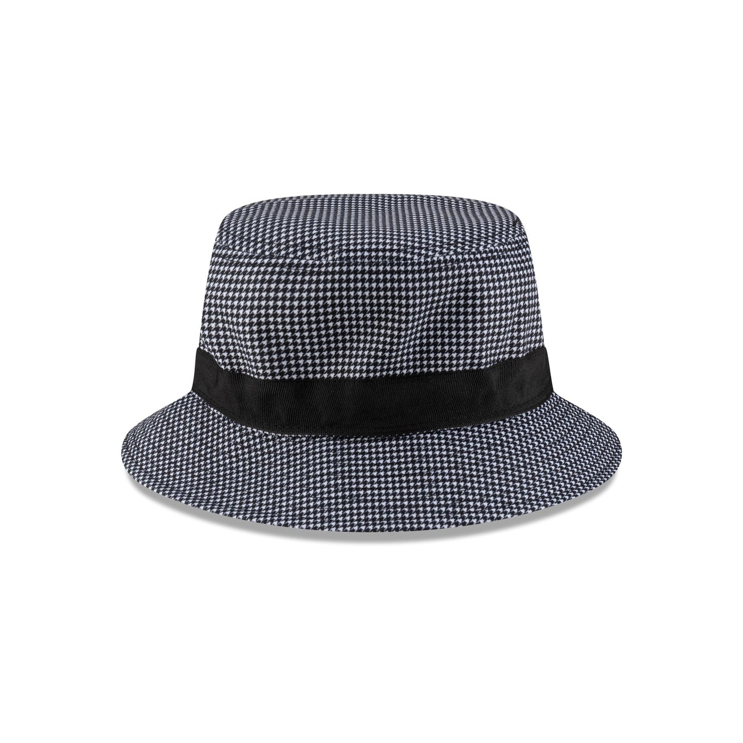 The New Era Cap Houndstooth Black Bucket Hat features a woven New Era logo at the front panels with a New Era Golf logo at the right-wear side.