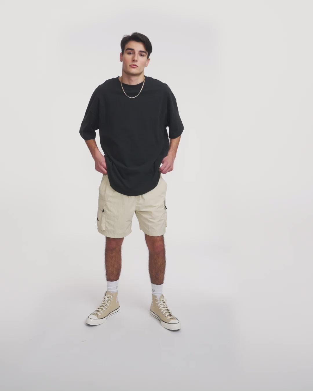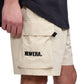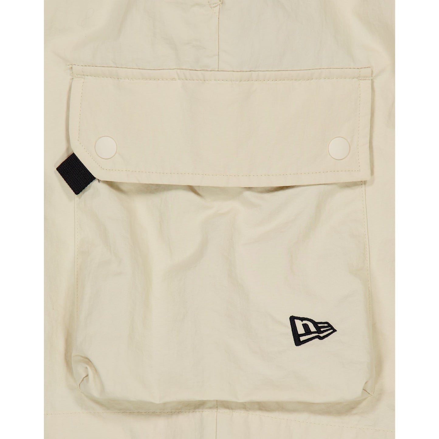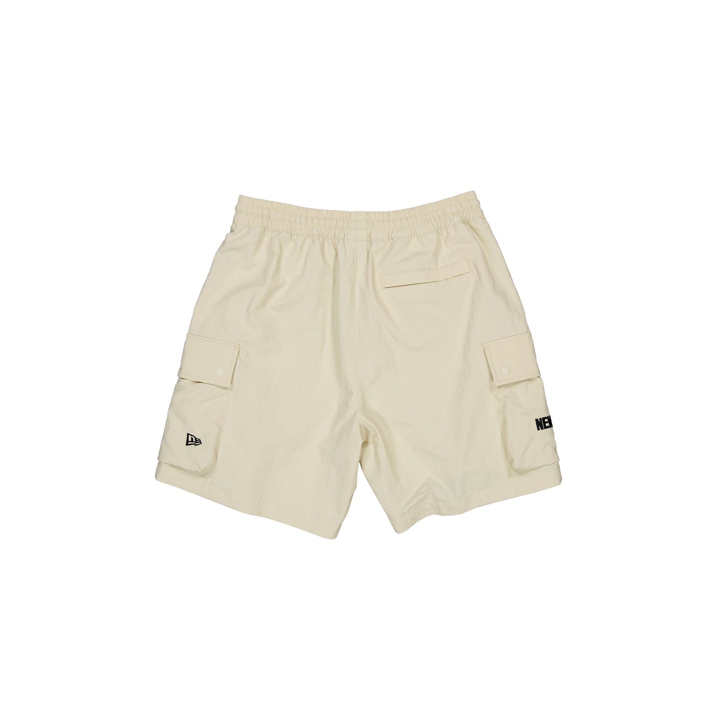 The New Era Cap Ivory Outdoor Shorts features an embroidered New Era wordmark at the right pocket with a New Era Flag at the left pocket.