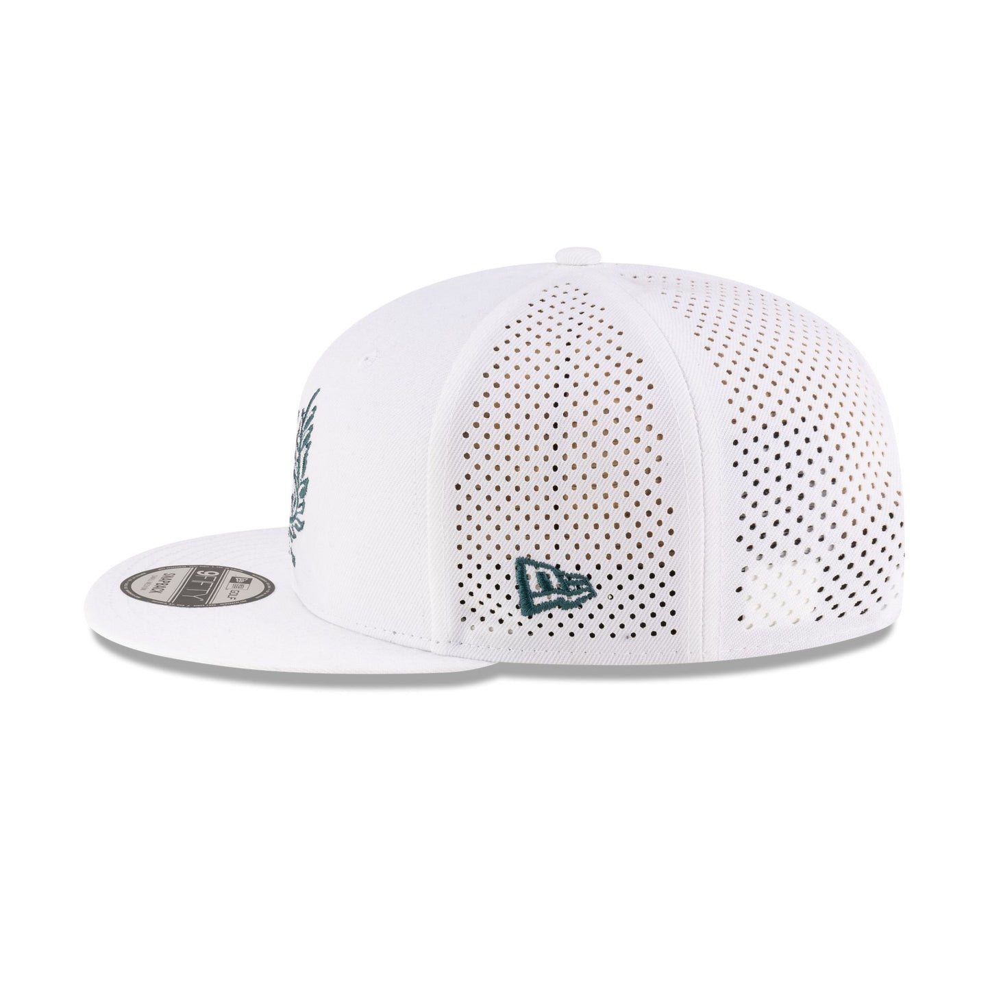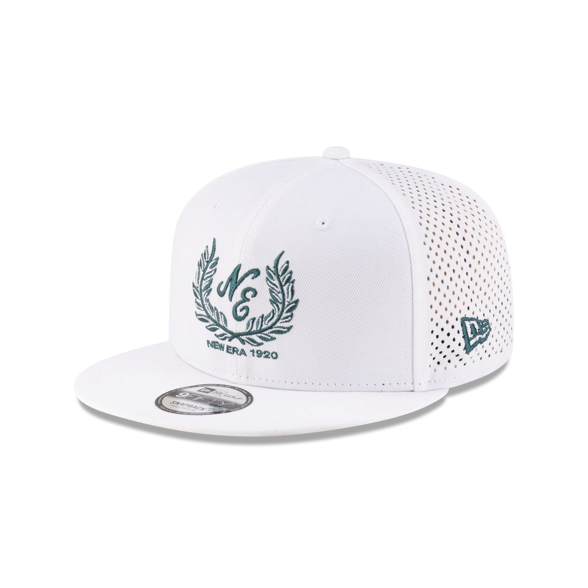 The New Era Cap Laurel Wreath White 9FIFTY Snapback features an embroidered New Era 1920 laurel wreath logo at the front panels with an adjustable snapback closure at the rear.
