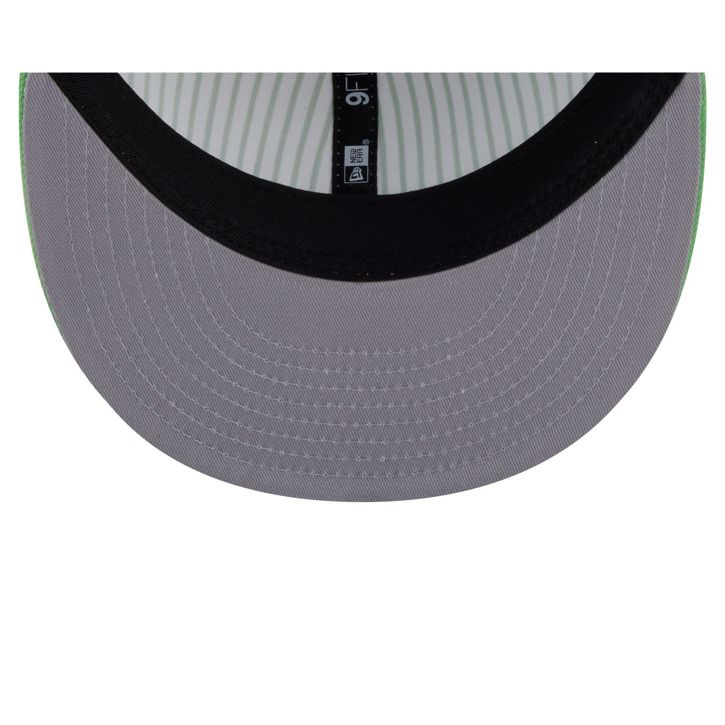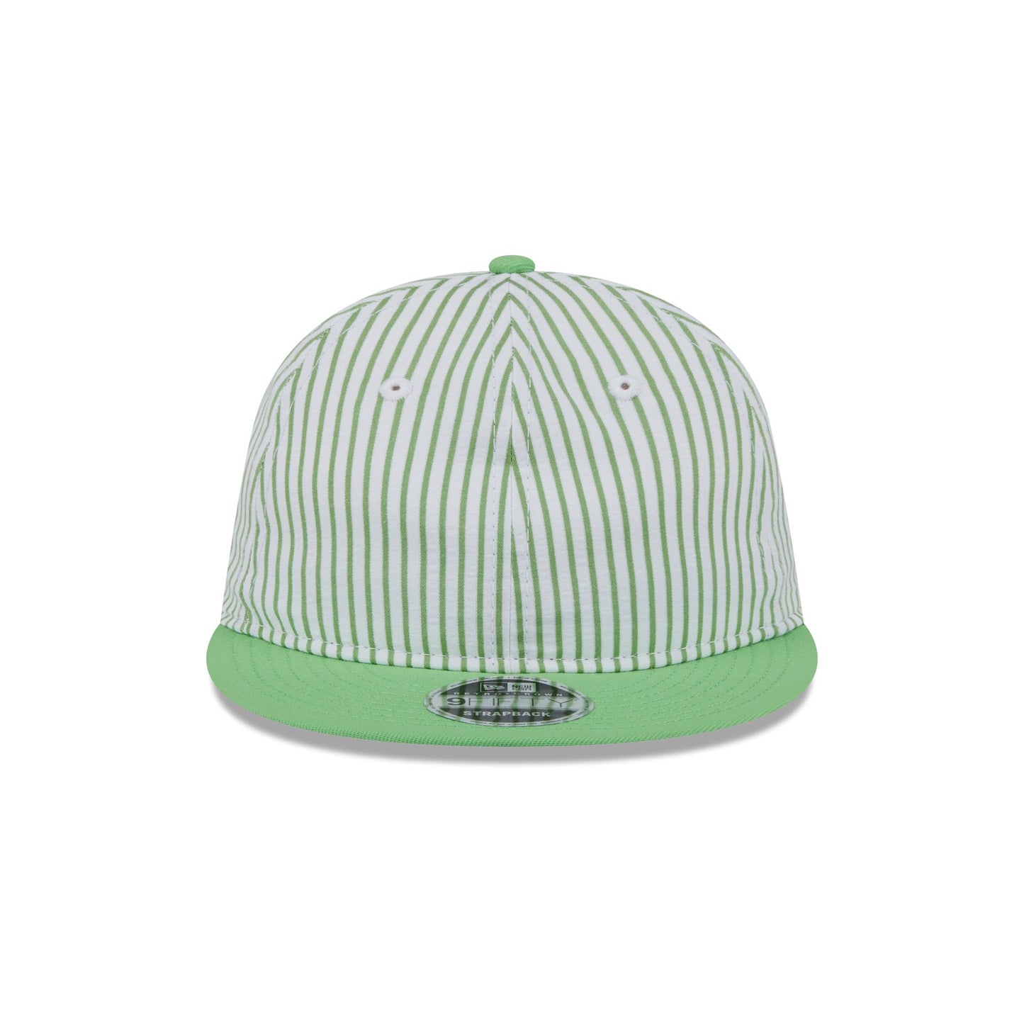 The Lime Green Pinstripe Retro Crown 9FIFTY Snapback features a pinstripe fabrication throughout with a New Era Flag at the left-wear side and an adjustable snapback closure at the rear.