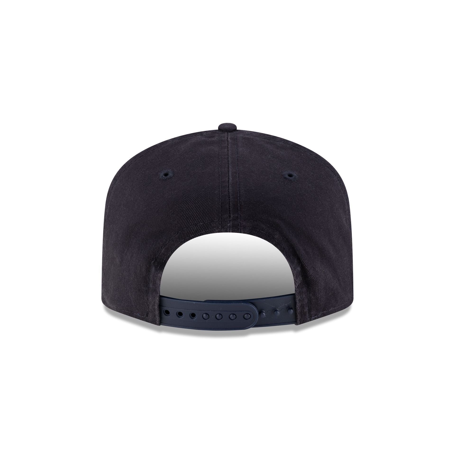 The New Era Cap Navy 19TWENTY Snapback is here. The 19TWENTY has a relaxed fit crown with pinched front panel construction and a mesh tray insert for light support. The cap features a squared edge pre-curved visor with an embroidered New Era Flag logo at the left-wear side and a snapback closure at the rear.