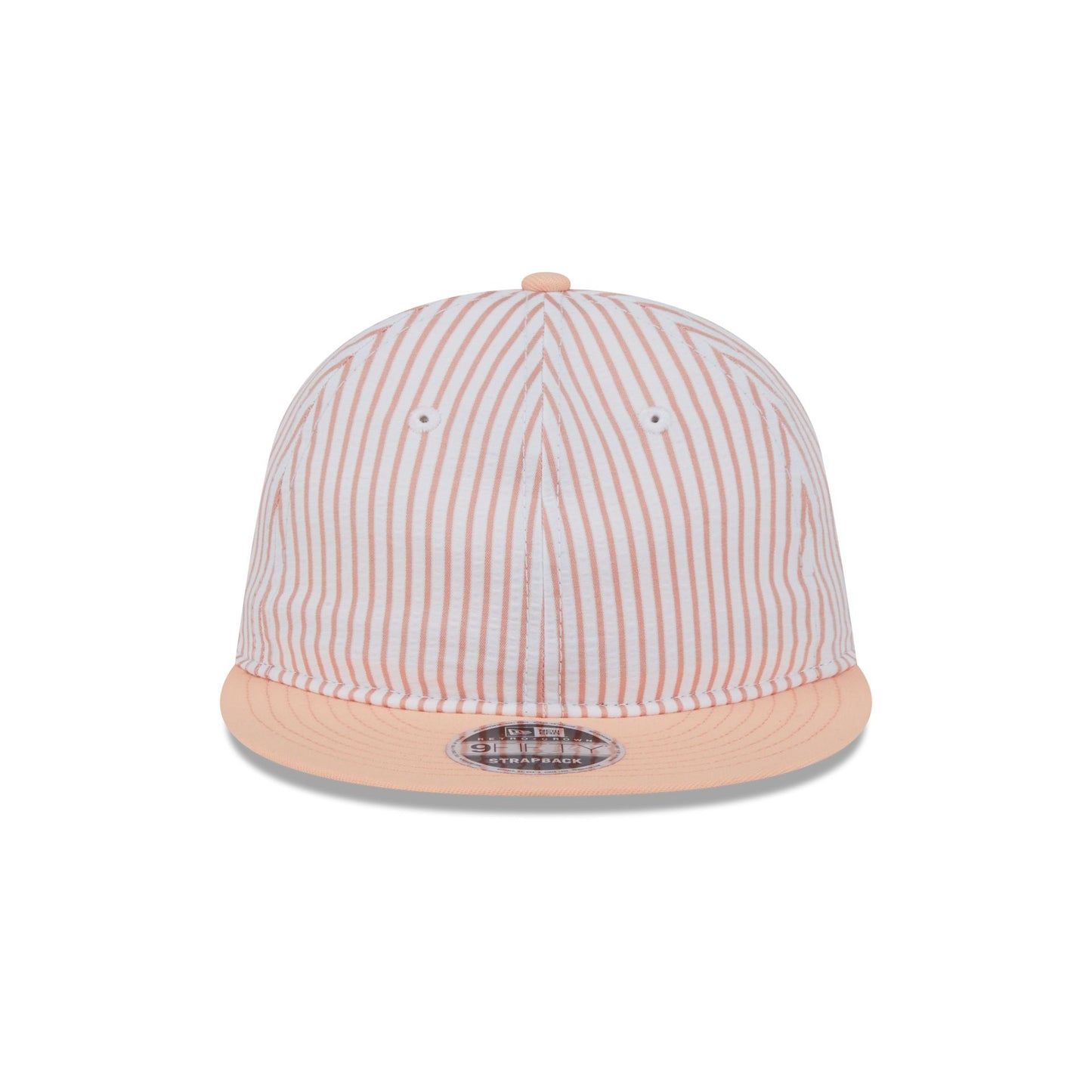 The Peach Pinstripe Retro Crown 9FIFTY Snapback features a pinstripe fabrication throughout with a New Era Flag at the left-wear side and an adjustable snapback closure at the rear.