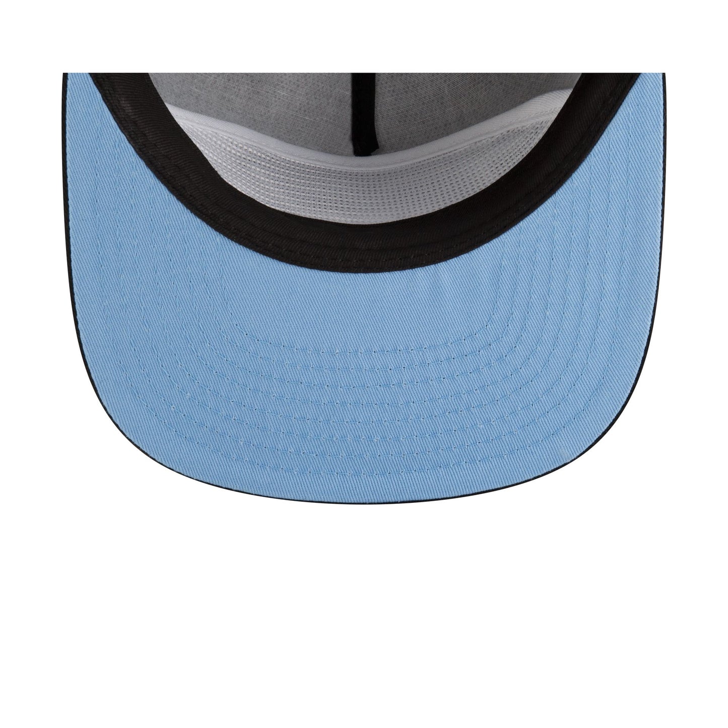 The New Era Cap Put it Top Shelf Golfer Hat features an embroidered Put it Top Shelf script at the front panels with a Buffalo patch at the right-wear side and a blue undervisor.