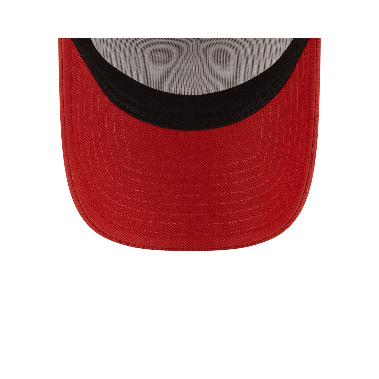 The New Era Cap Red Hot Rod 9FORTY A-Frame Trucker features an embroidered New Era Vintage Hot Rods patch at the front panels with a mesh back and a red undervisor.