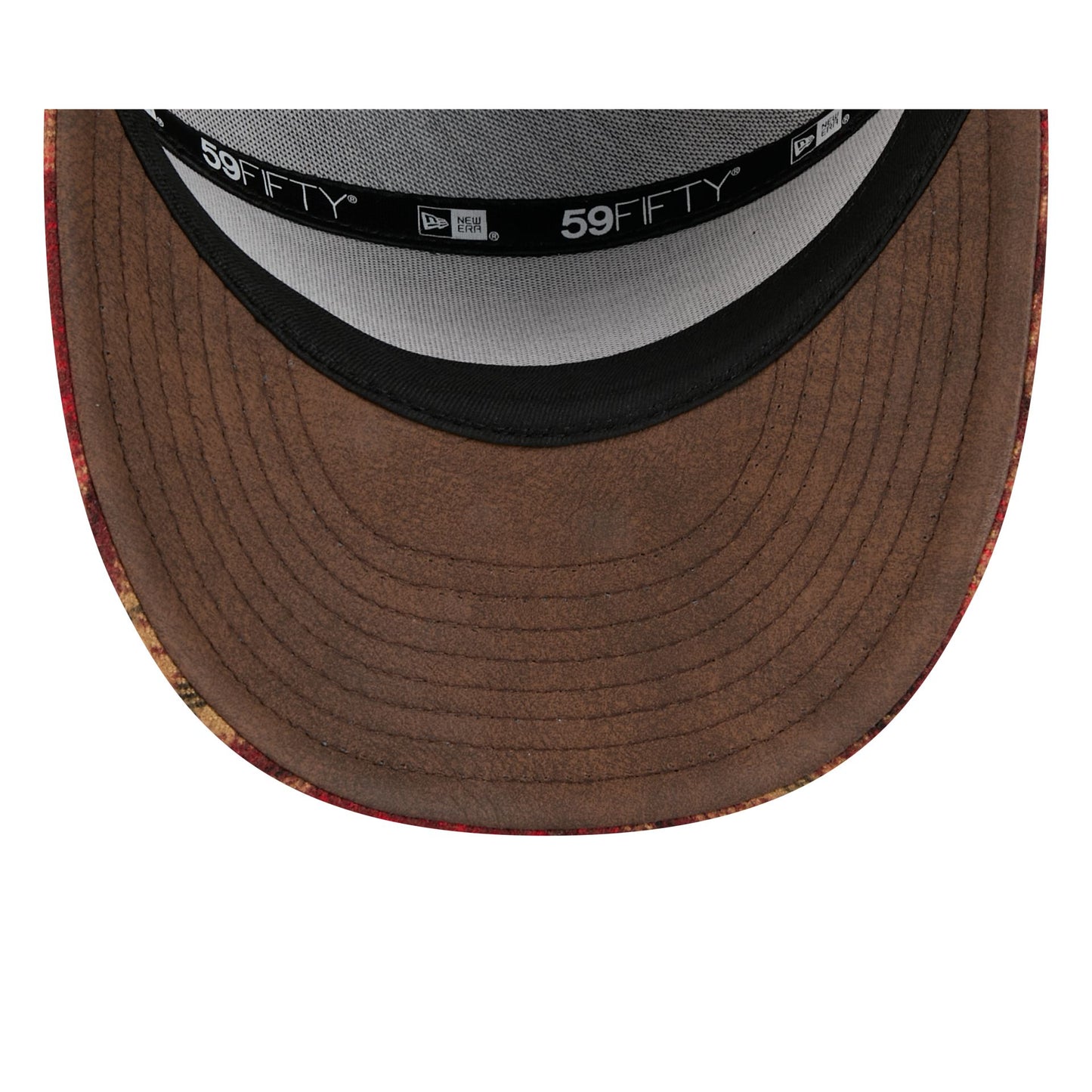 The New Era Cap Silver Tier Wool Plaid Split Panel 59FIFTY Fitted Cap features a wool plaid fabrication throughout a split crown construction with the New Era Flag at the left-wear side. Additional details include a pre-curved visor and a brown faux leather undervisor.