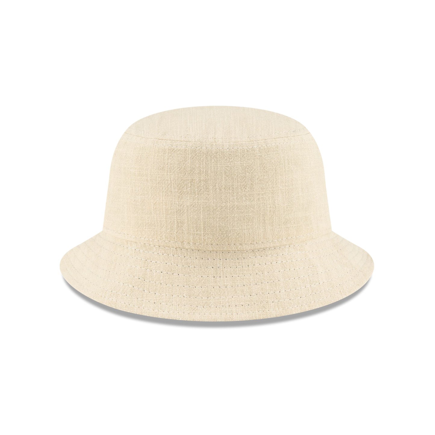 The New Era Cap Soft Linen Stone Bucket Hat features an embroidered New Era wordmark at the front with black underbrim.