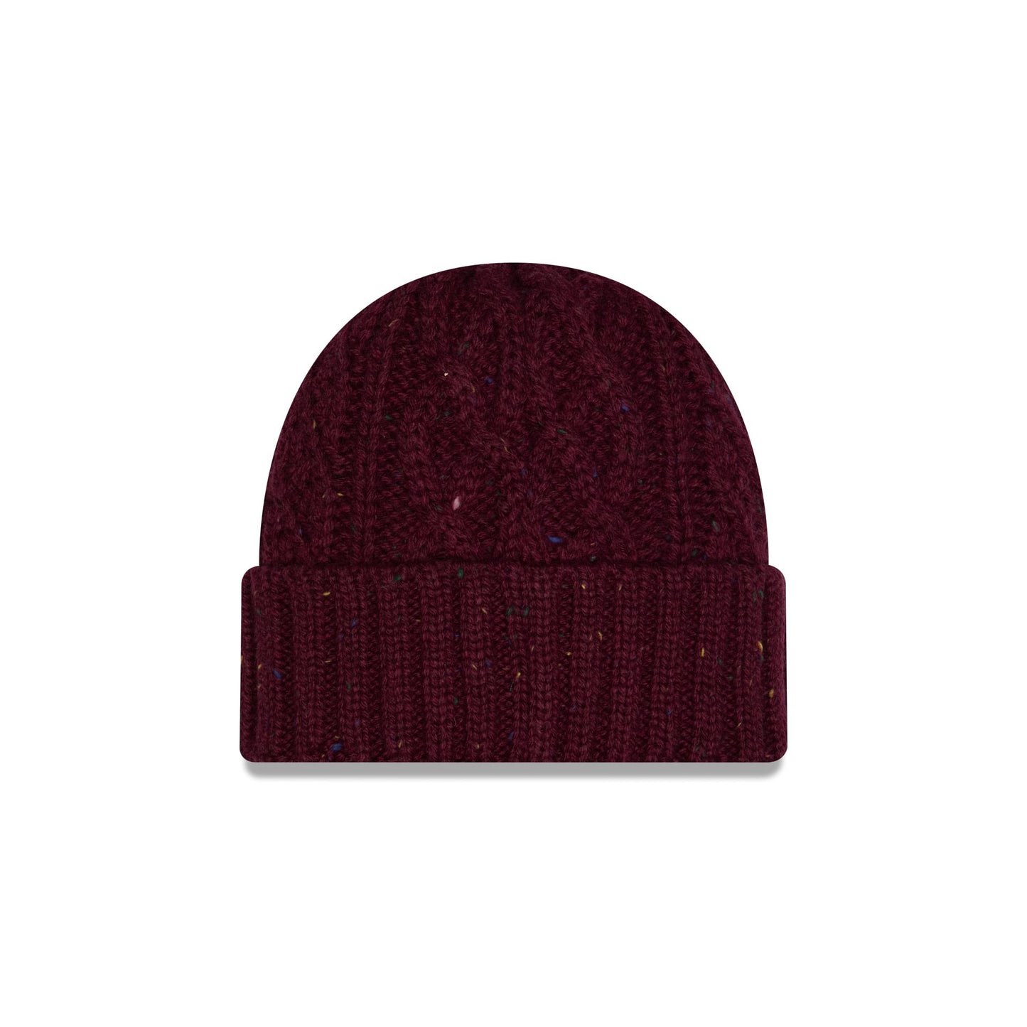 The New Era Cap Speckled Maroon Cable Knit features a woven New Era Flag tag at the left-wear side.
