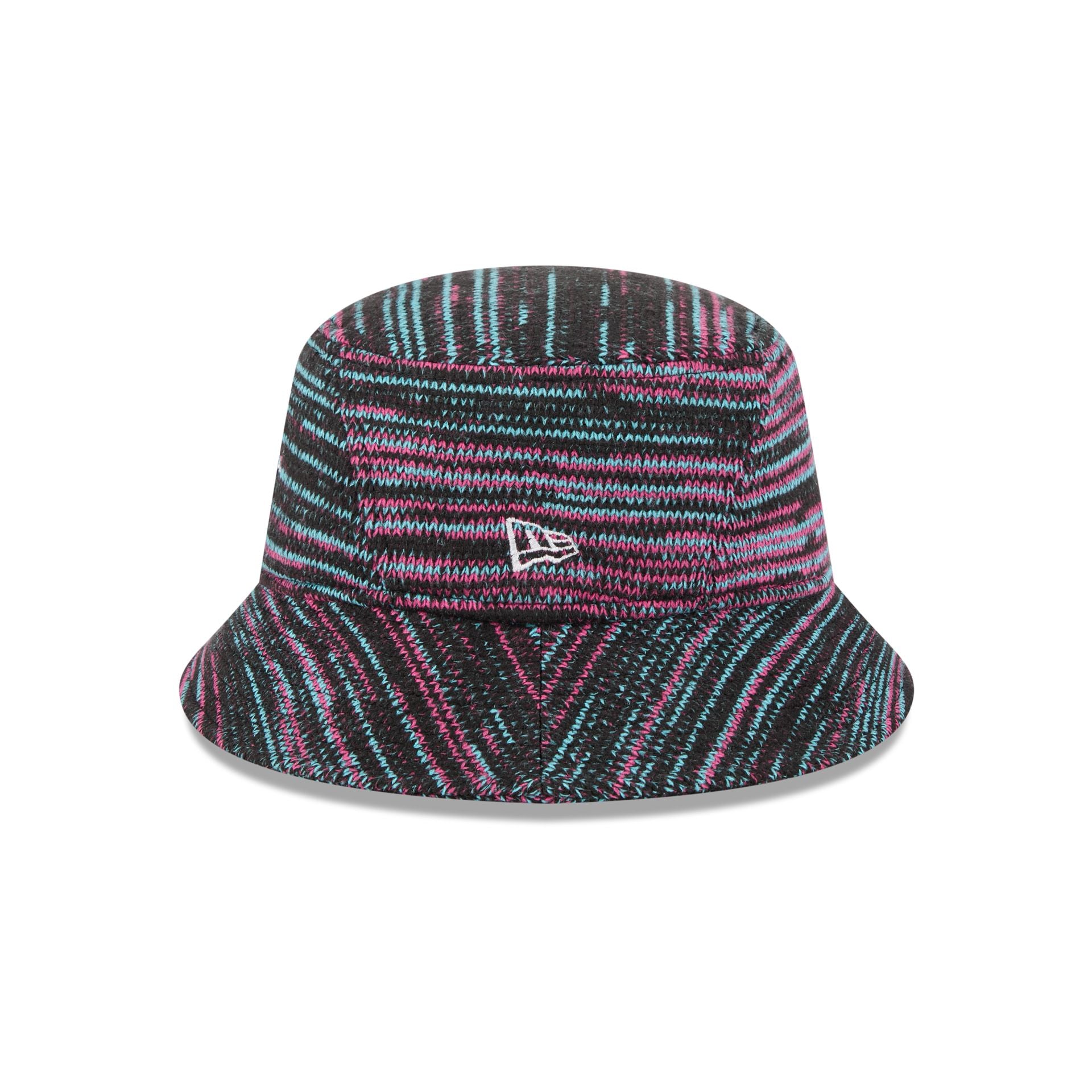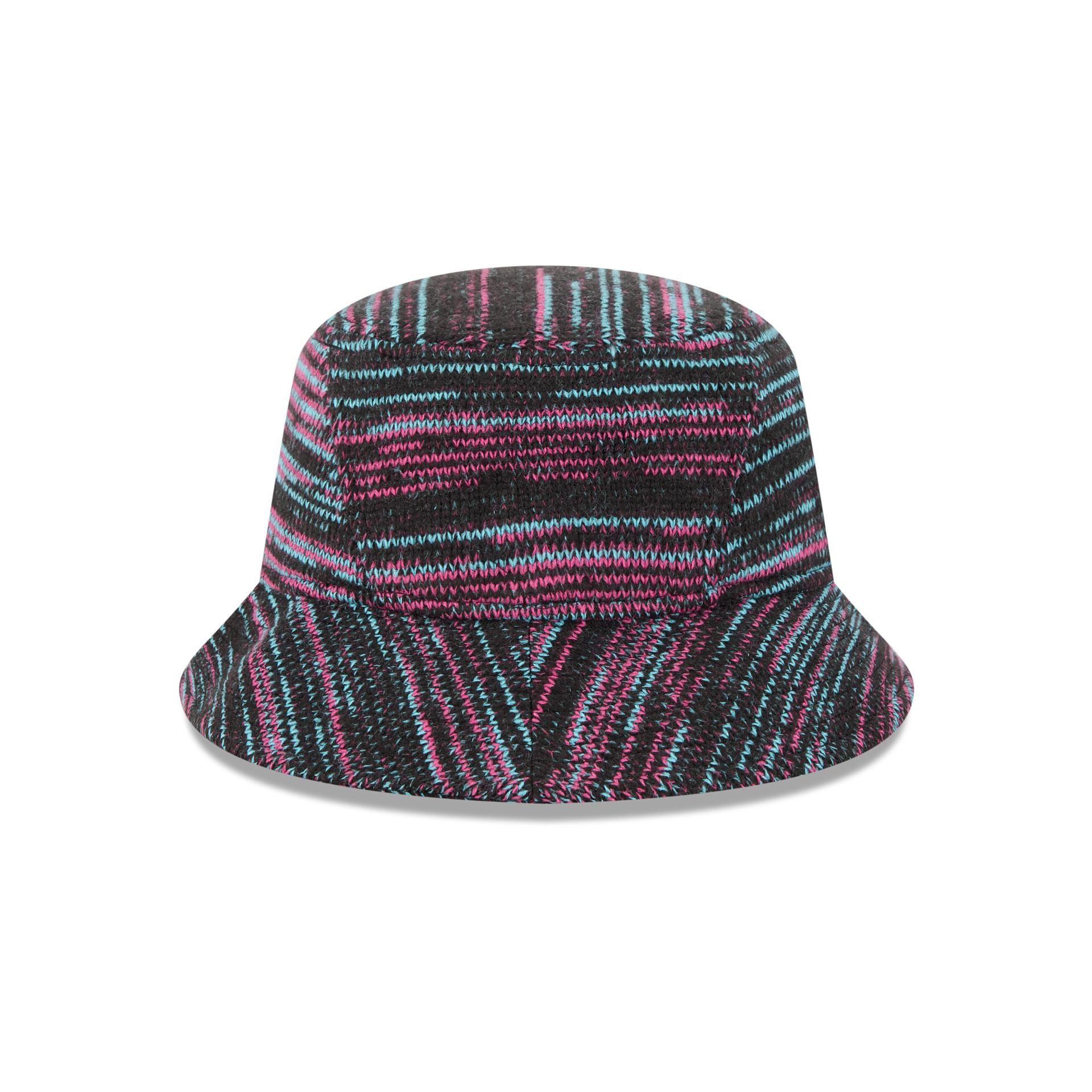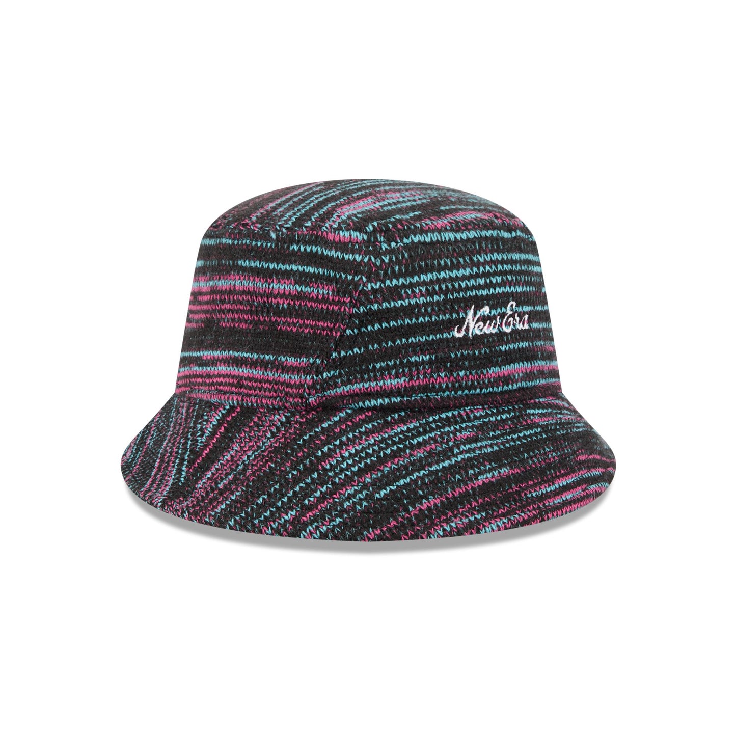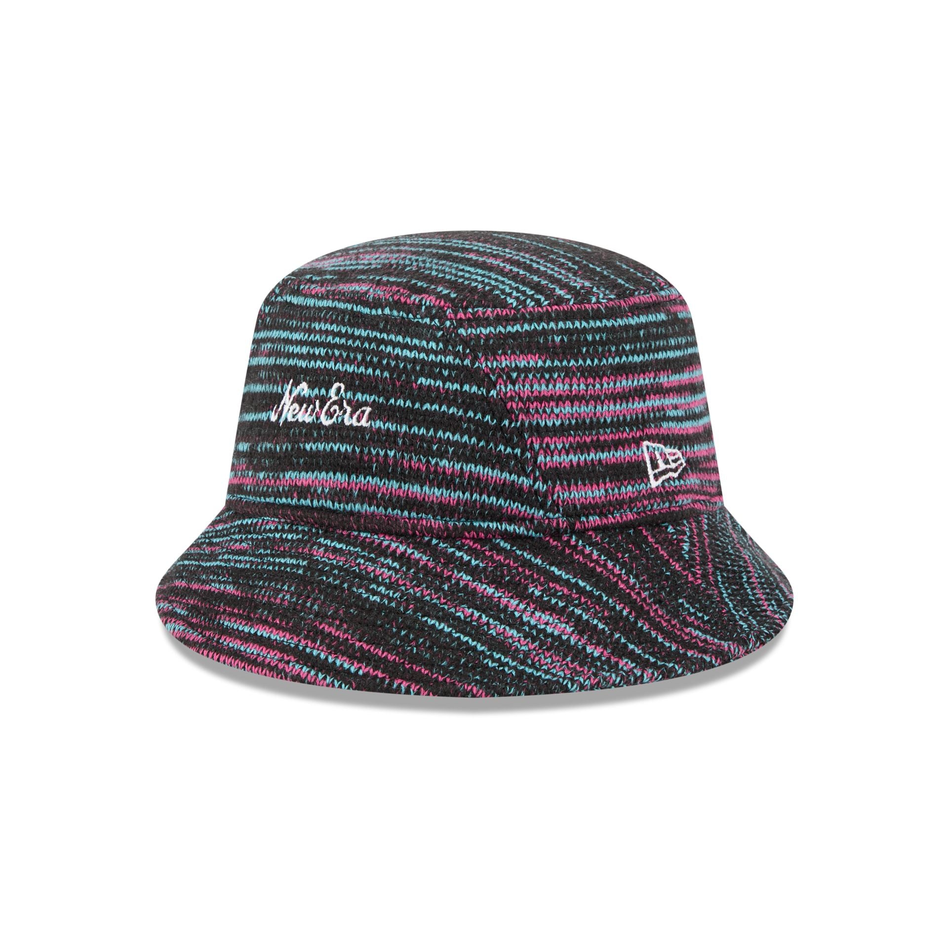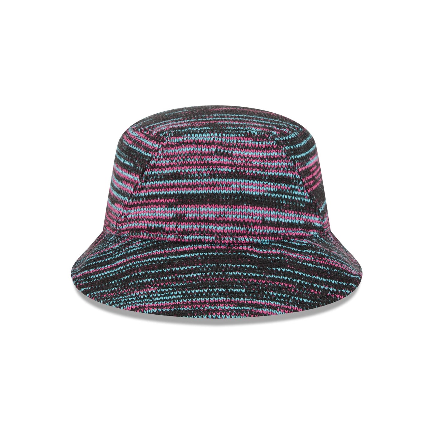The New Era Cap Vice Blue Knit Bucket Hat features a multi-paneled knit fabrication throughout with drawstrings.