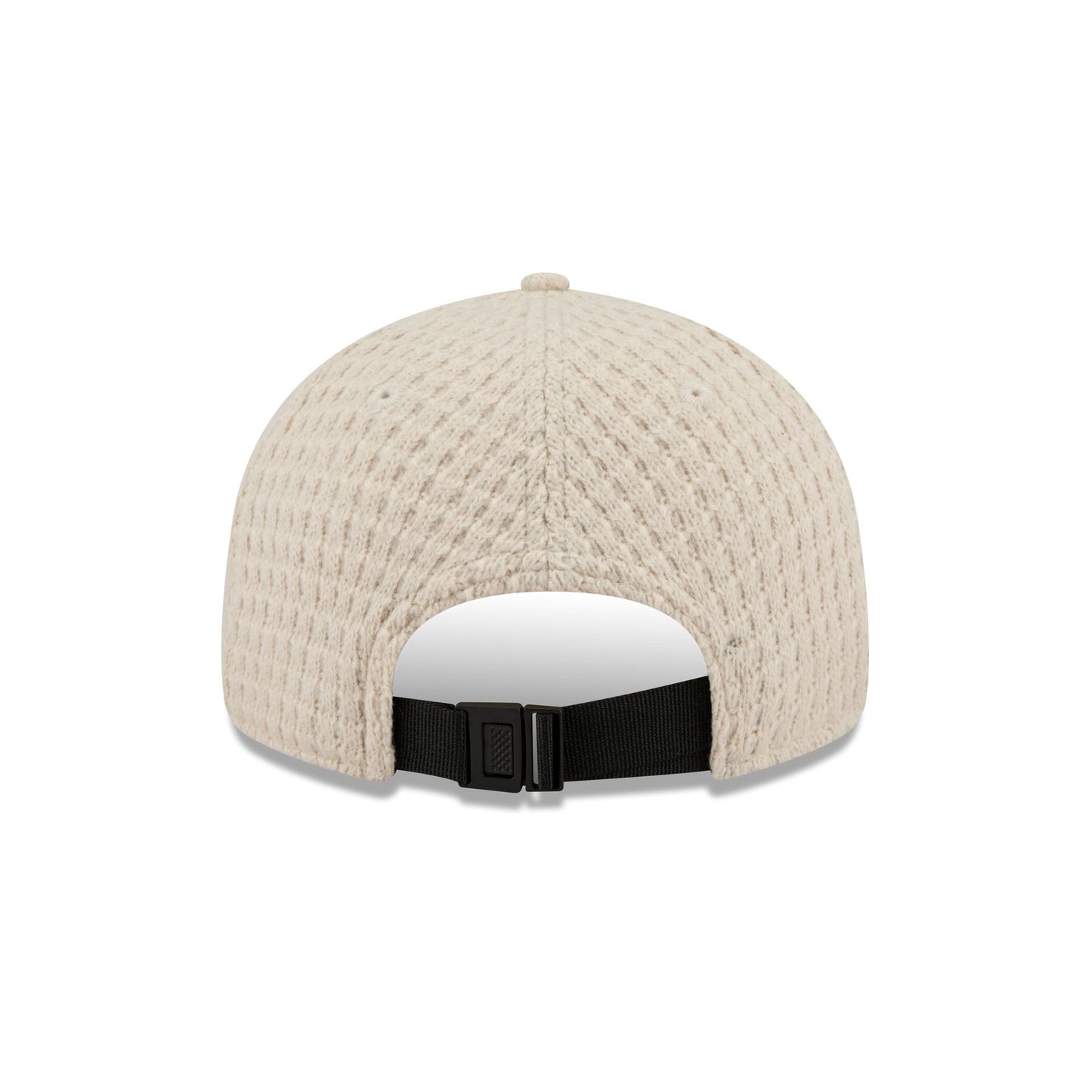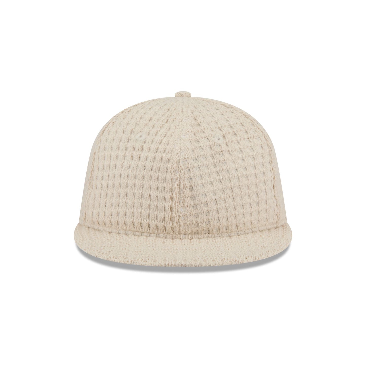 The New Era Cap Waffle Knit Stone Retro Crown 9FIFTY Strapback Cap features an embroidered New Era Flag at the left-wear side with a waffle knit fabrication, a gray undervisor, and an adjustable strapback closure at the rear.