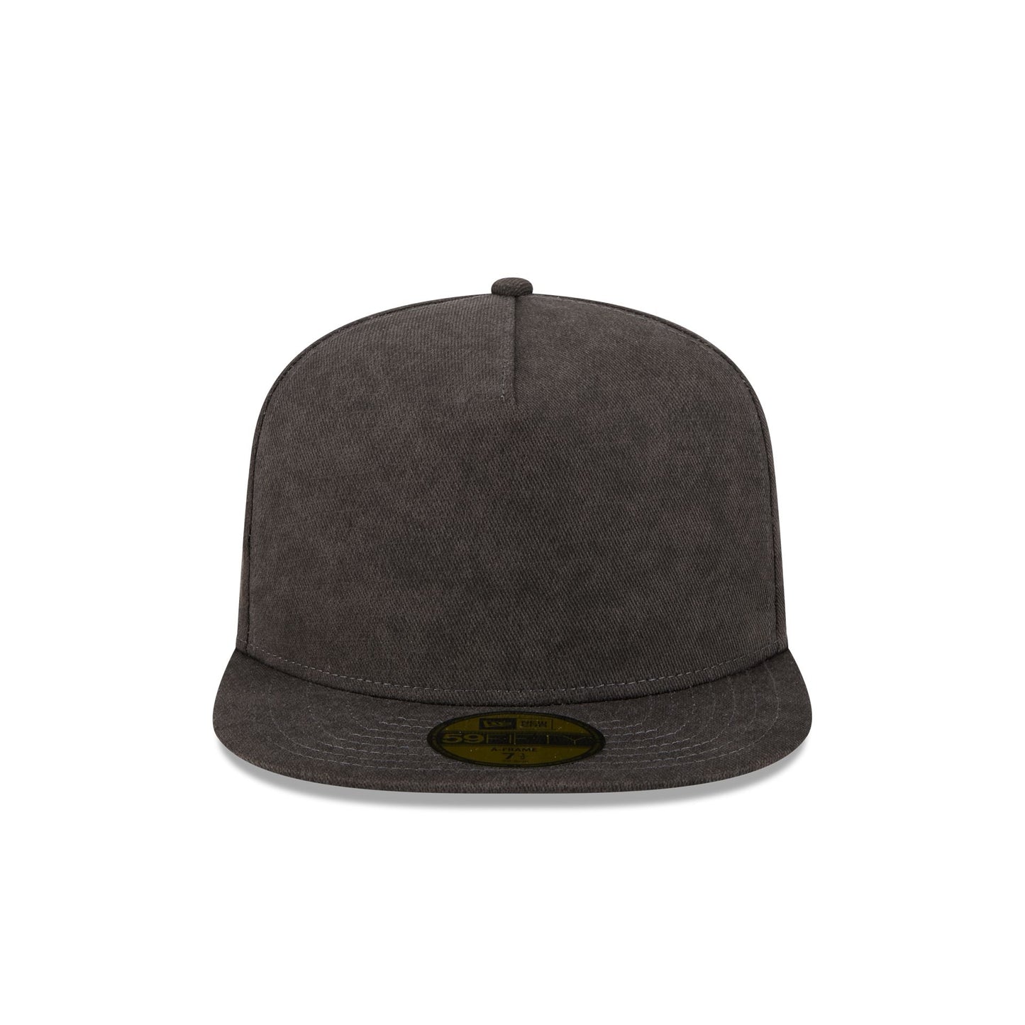 The New Era Cap Washed Twill Black 59FIFTY A-Frame Fitted Cap features an embroidered New Era Flag at the left-wear side.