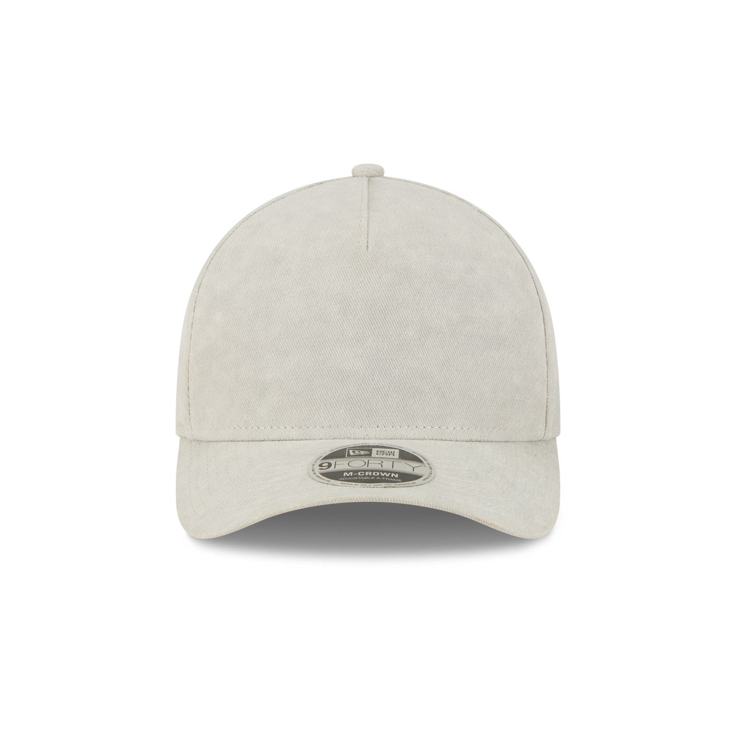 The New Era Cap Washed Twill Light Biege 9FORTY M-Crown A-Frame Adjustable Cap features an embroidered New Era Flag at the left-wear side with an adjustable leather strap closure at the rear.