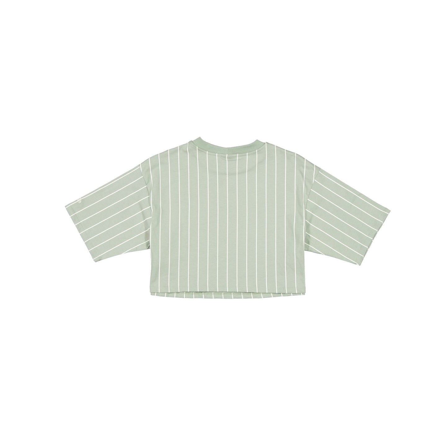 The New Era Cap Women's Cropped Everest Green Pinstripe T-Shirt features an embroidered New Era script wordmark at the front. This tee is cropped and has a boxy fit.