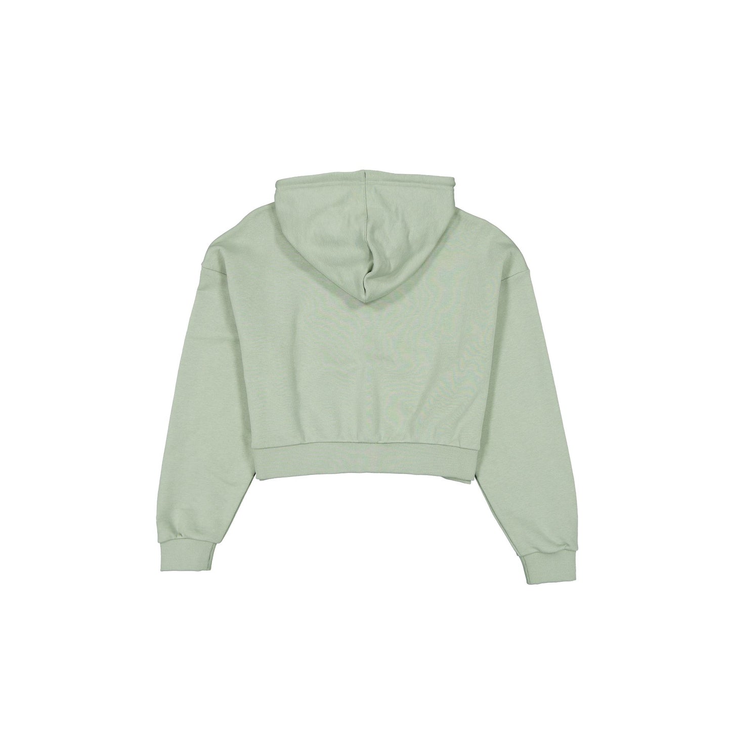 The New Era Cap Women's Cropped Everest Green Script Hoodie features an embroidered New Era script wordmark at the front.