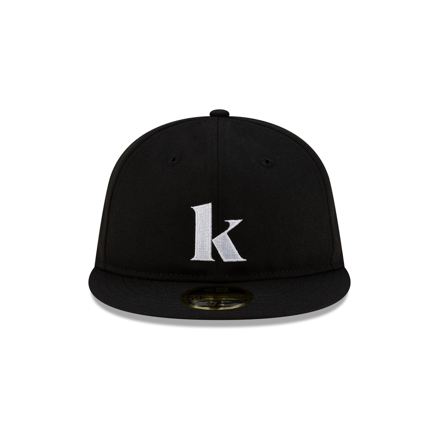 The New Era Cap x Kompakt Record Bar K Retro Crown 59FIFTY Fitted Cap features an embroidered K logo at the front panels with a KRB logo at the right-wear side, an Every Damn Day script at the rear, and a black undervisor