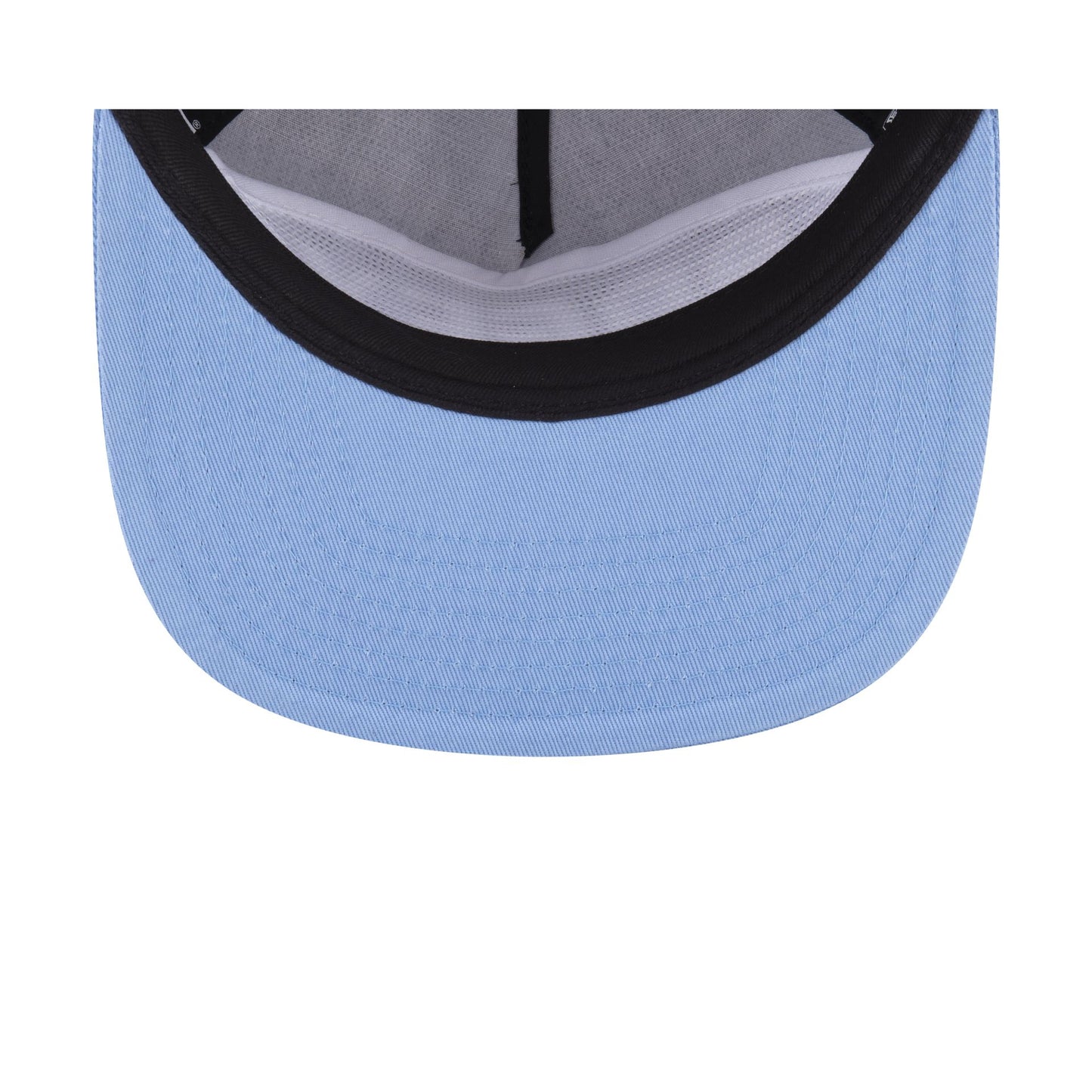 The New Era Golf Bogey Golfer features an embroidered Bogey wordmark at the front panels with a New Era Golf logo above a snapback closure at the rear and a blue undervisor.