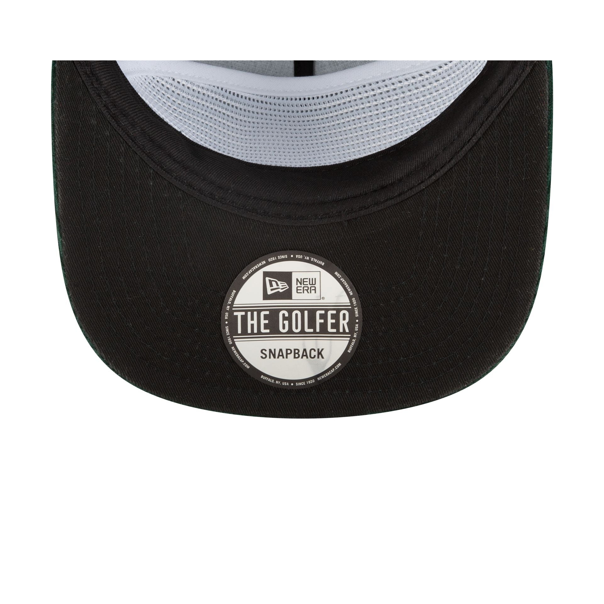 The New Era Golf Green Corduroy Golfer features an embroidered golf text at the front panels with a New Era Golf logo above a snapback closure at the rear and a black undervisor.