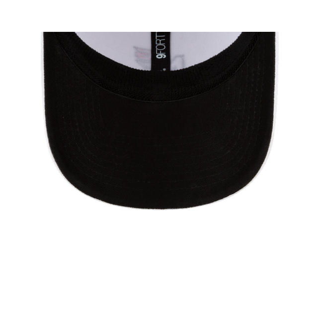 The New Era Golf White 9FORTY Stretch Snap Cap features an embroidered New Era Golf logo at the front panels with a corresponding wordmark above a snapback closure at the rear and black undervisor.
