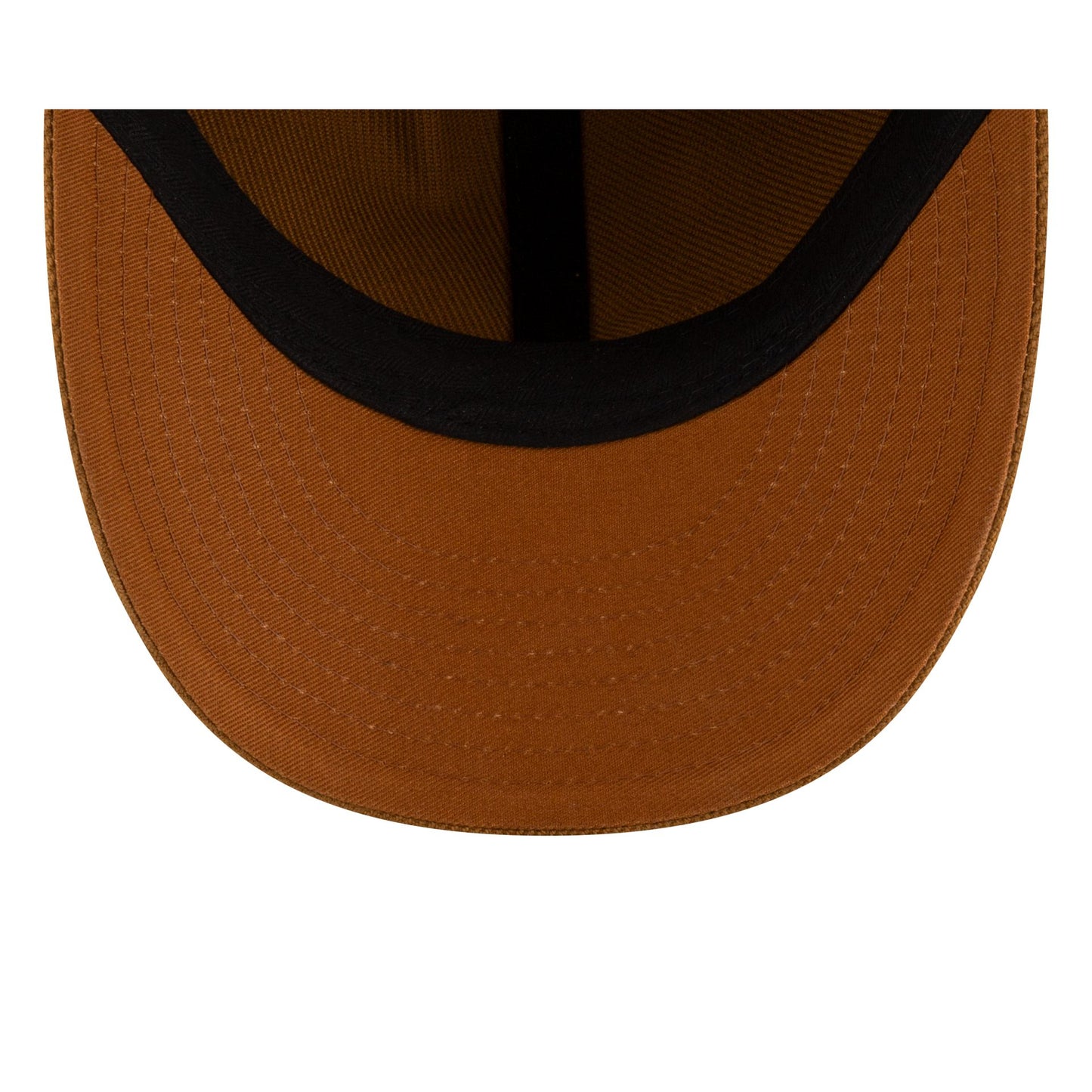 The New Era Heavy Twill Beige Retro Crown 9FIFTY Strapback Cap features an embroidered New Era Flag at the left-wear side with an adjustable metal clasp closure at the rear.