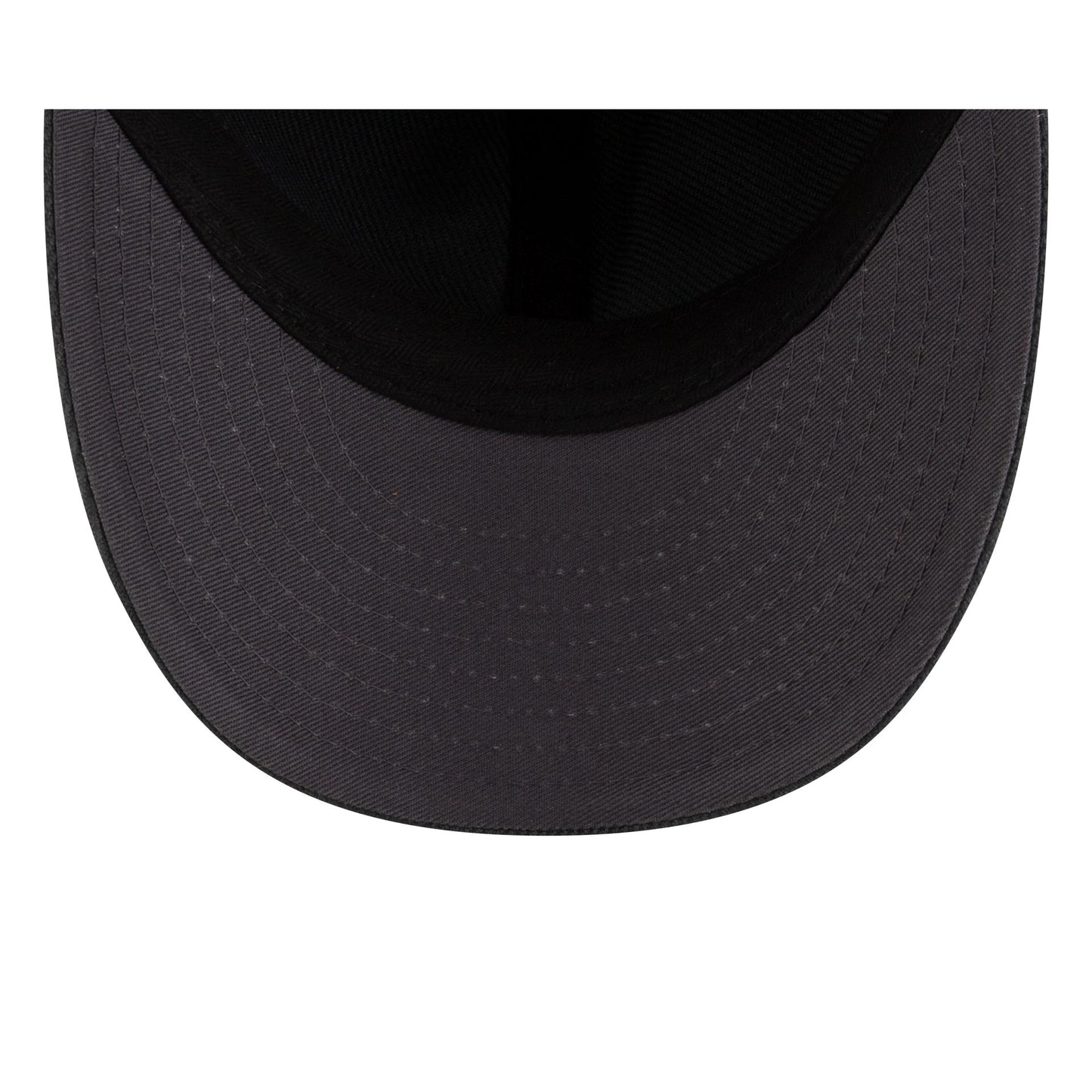 The New Era Heavy Twill Dark Gray Retro Crown 9FIFTY Strapback Cap features an embroidered New Era Flag at the left-wear side with an adjustable metal clasp closure at the rear.