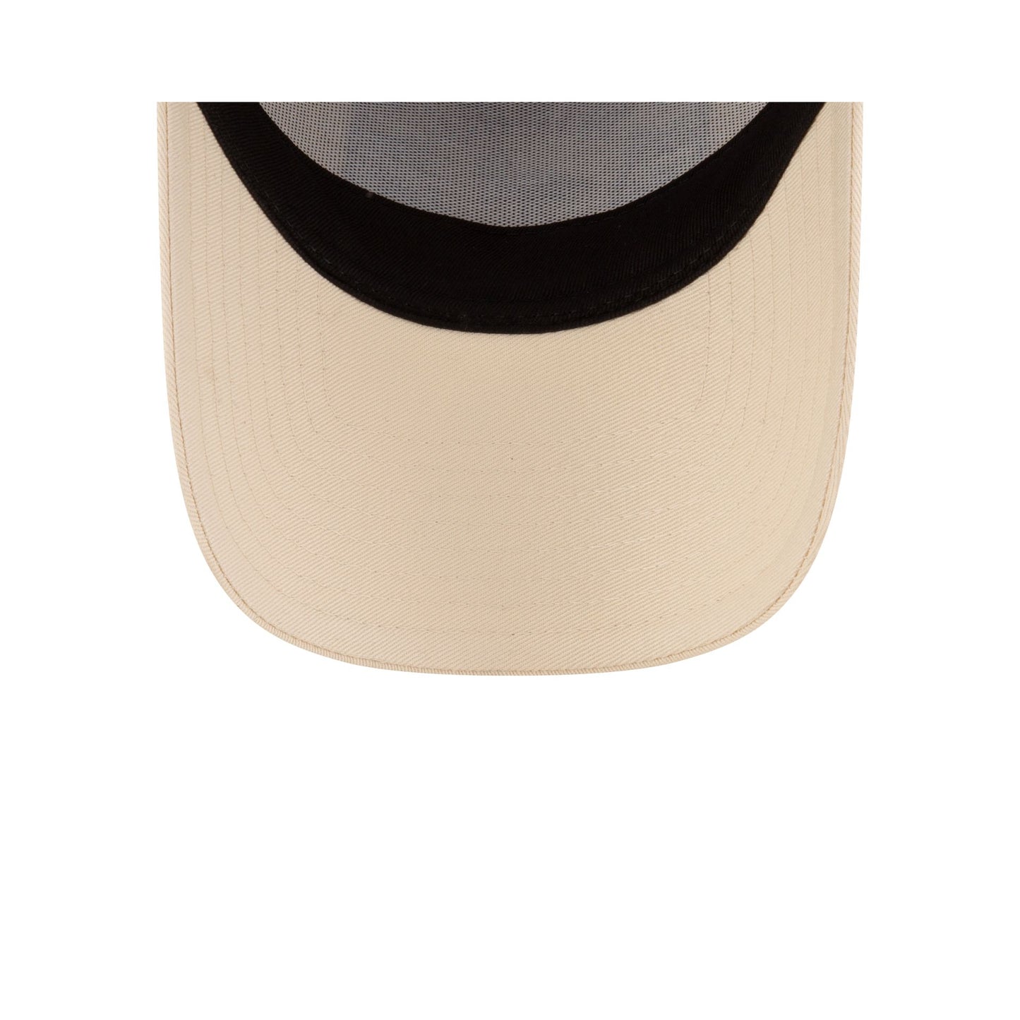 The New Era Miami Tan 9FORTY A-Frame Snapback Hat features an embroidered Miami Flamingo patch at the front panels with a snapback closure at the rear and a black undervisor.