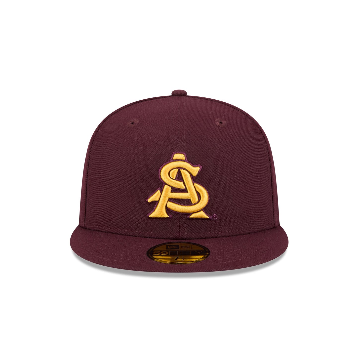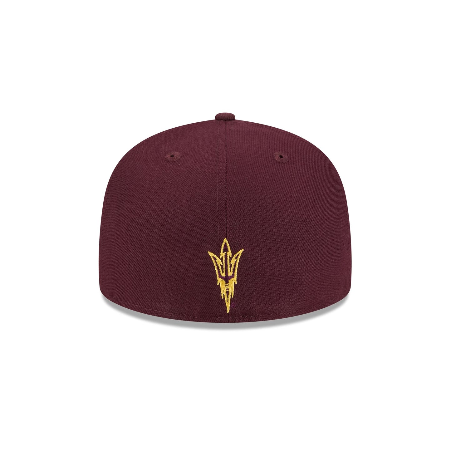The New Era x adidas Arizona State Sun Devils 59FIFTY Fitted Cap features an embroidered Sun Devils logo at the front panels with a team graphic at the rear and a gray undervisor.