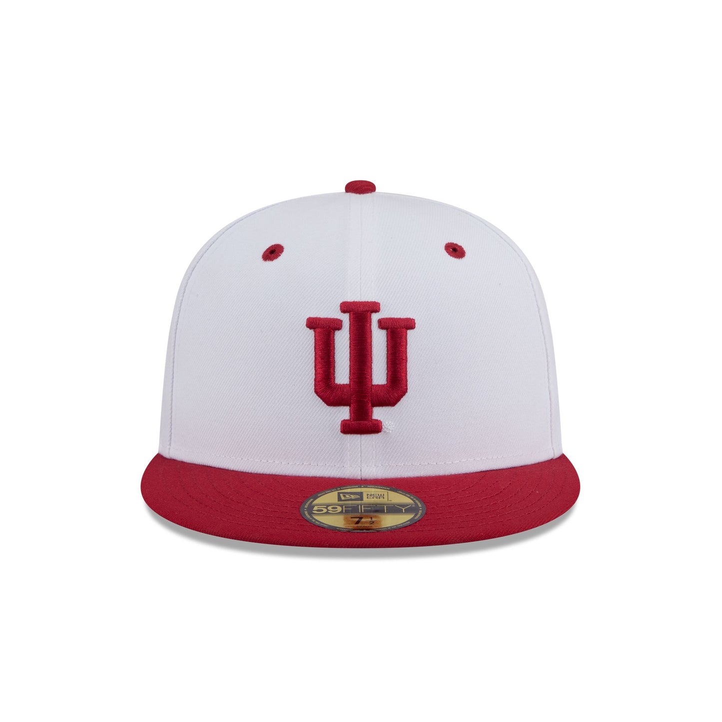 The New Era x adidas Indiana Hoosiers White 59FIFTY Fitted Cap features an embroidered Hoosiers logo at the front panels with a team graphic at the rear and a gray undervisor.