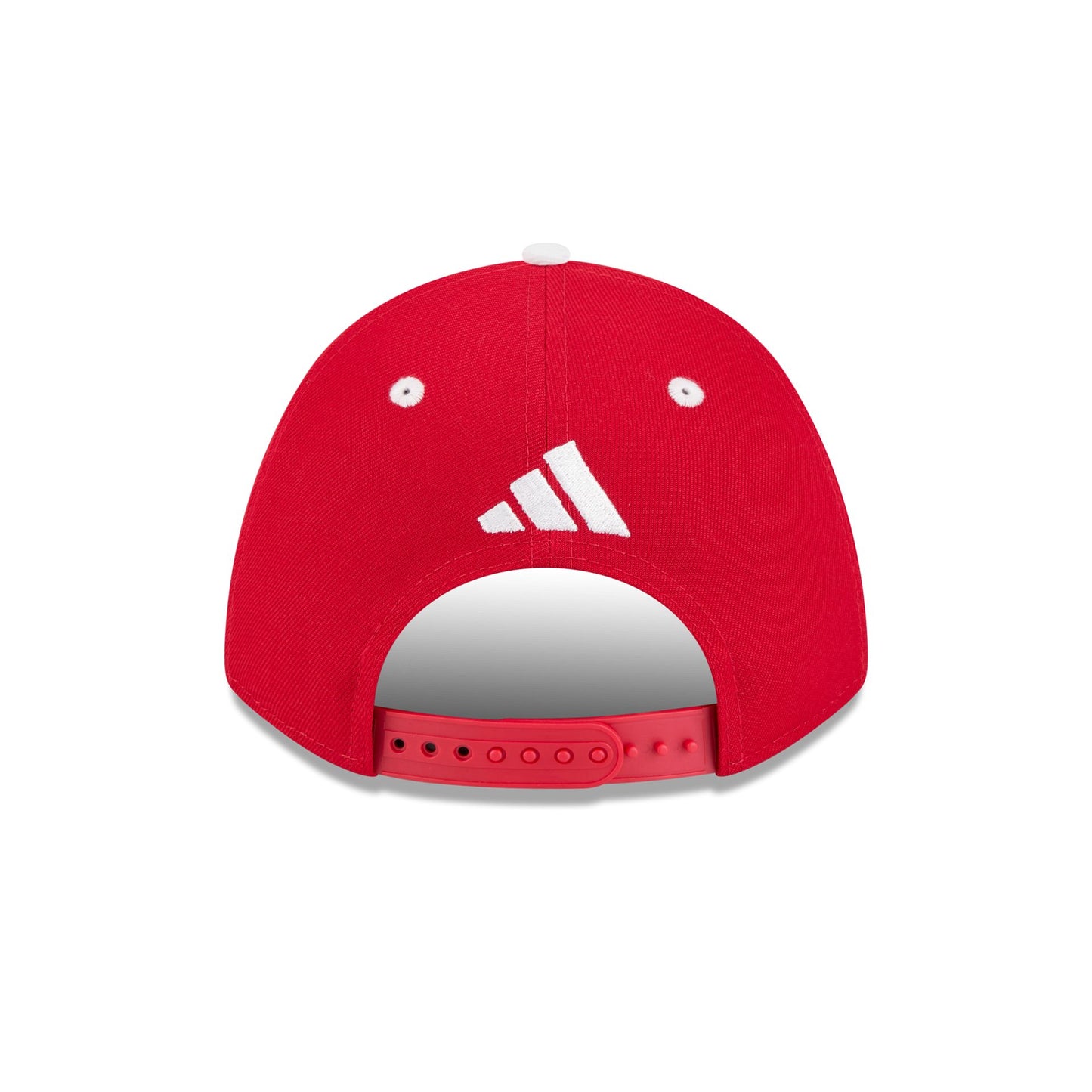 The New Era x adidas Louisville Cardinals 9FORTY M-Crown Snapback features an embroidered Cardinals logo at the front panels with the adidas logo above and adjustable snapback closure at the rear and a gray undervisor.