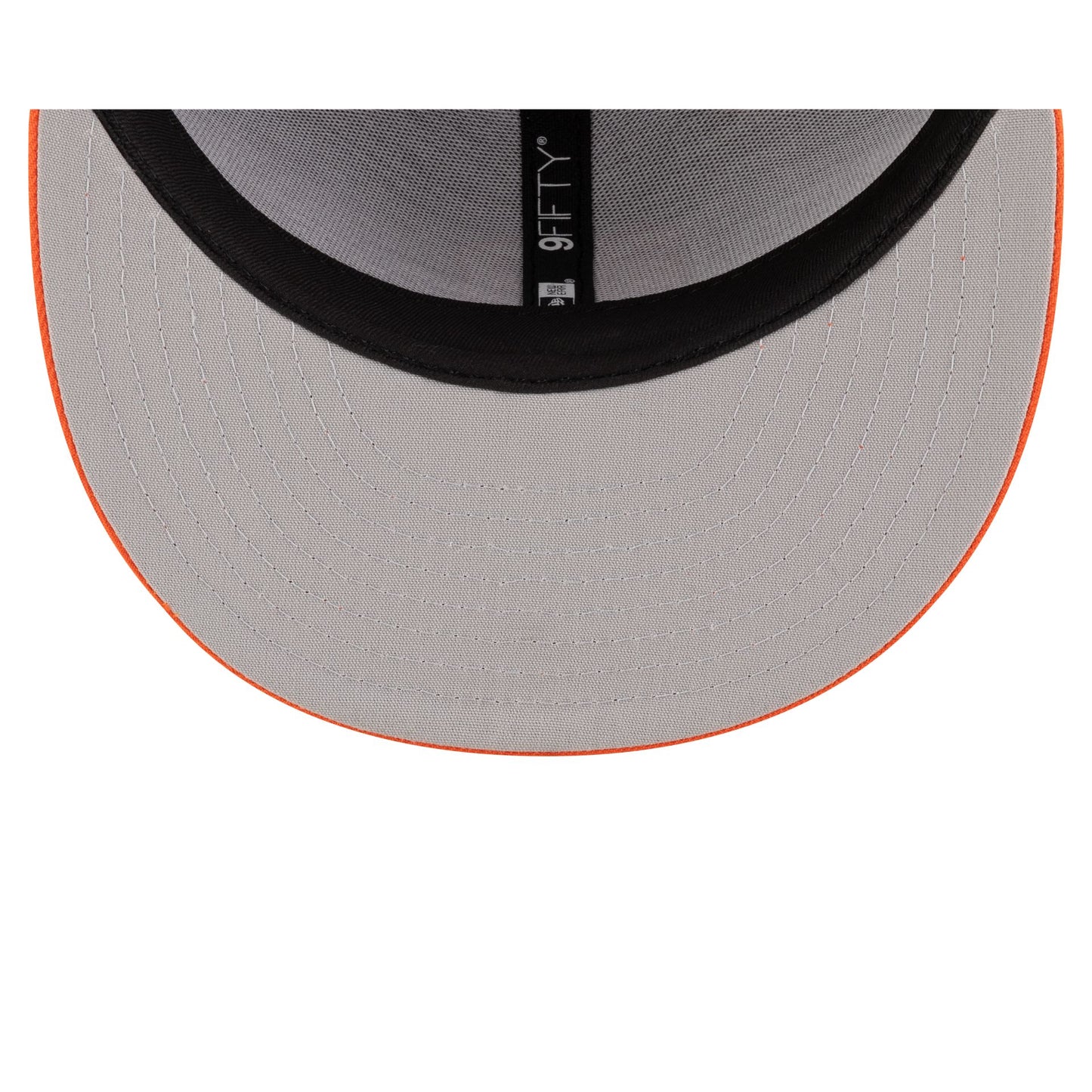 The Official On-Field cap for Miami Hurricanes baseball, the Black 9FIFTY Snapback features an embroidered Hurricanes logo at the front panels with the adidas logo above a snapback closure at the rear and a gray undervisor.