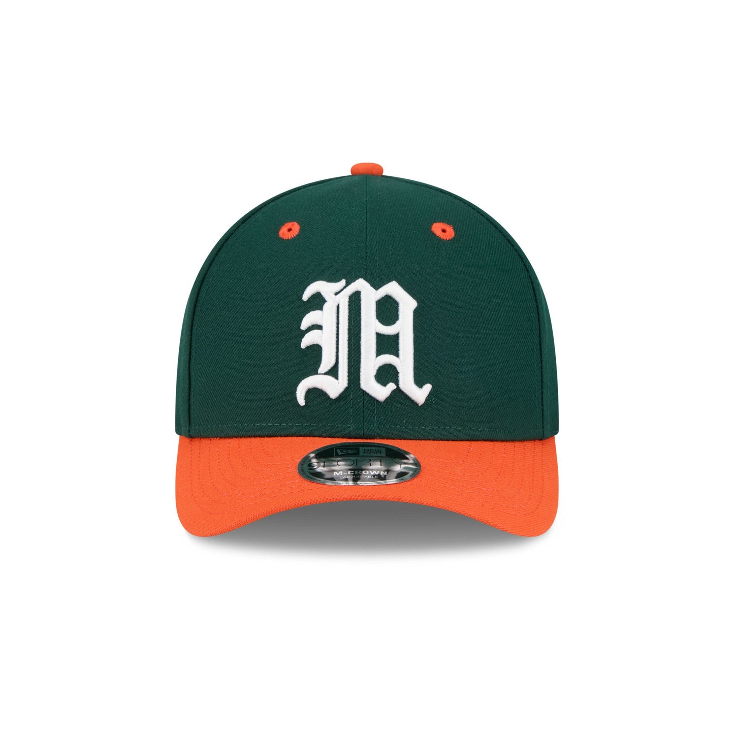 The New Era x adidas Miami Hurricanes Dark Green 9FORTY M-Crown Snapback features an embroidered Hurricanes logo at the front panels with the adidas logo above and adjustable snapback closure at the rear and a gray undervisor.