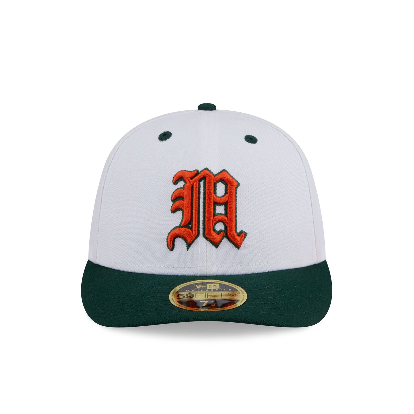 The New Era x adidas Miami Hurricanes White Low Profile 59FIFTY Fitted Cap features an embroidered Hurricanes logo at the front panels with a team graphic at the rear and a gray undervisor.