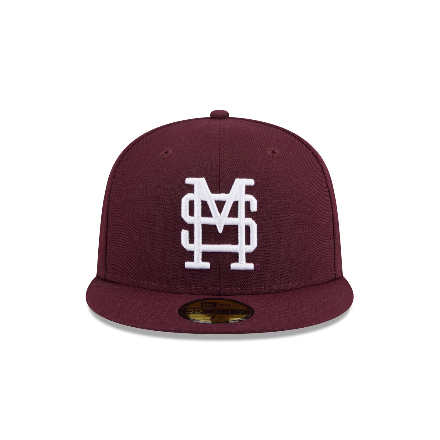The New Era x adidas Mississippi State Bulldogs 59FIFTY Fitted Cap features an embroidered Bulldogs logo at the front panels with a team graphic at the rear and a gray undervisor.