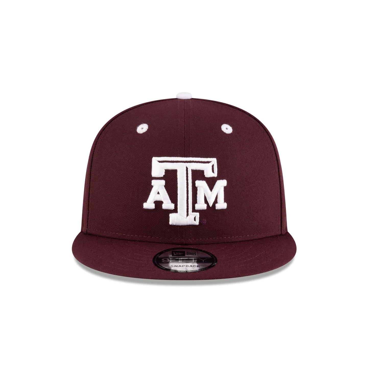 The Official On-Field cap for the Texas A&M Aggies baseball, the Red 9FIFTY Snapback features an embroidered Aggies logo at the front panels with the adidas logo above a snapback closure at the rear and a gray undervisor.