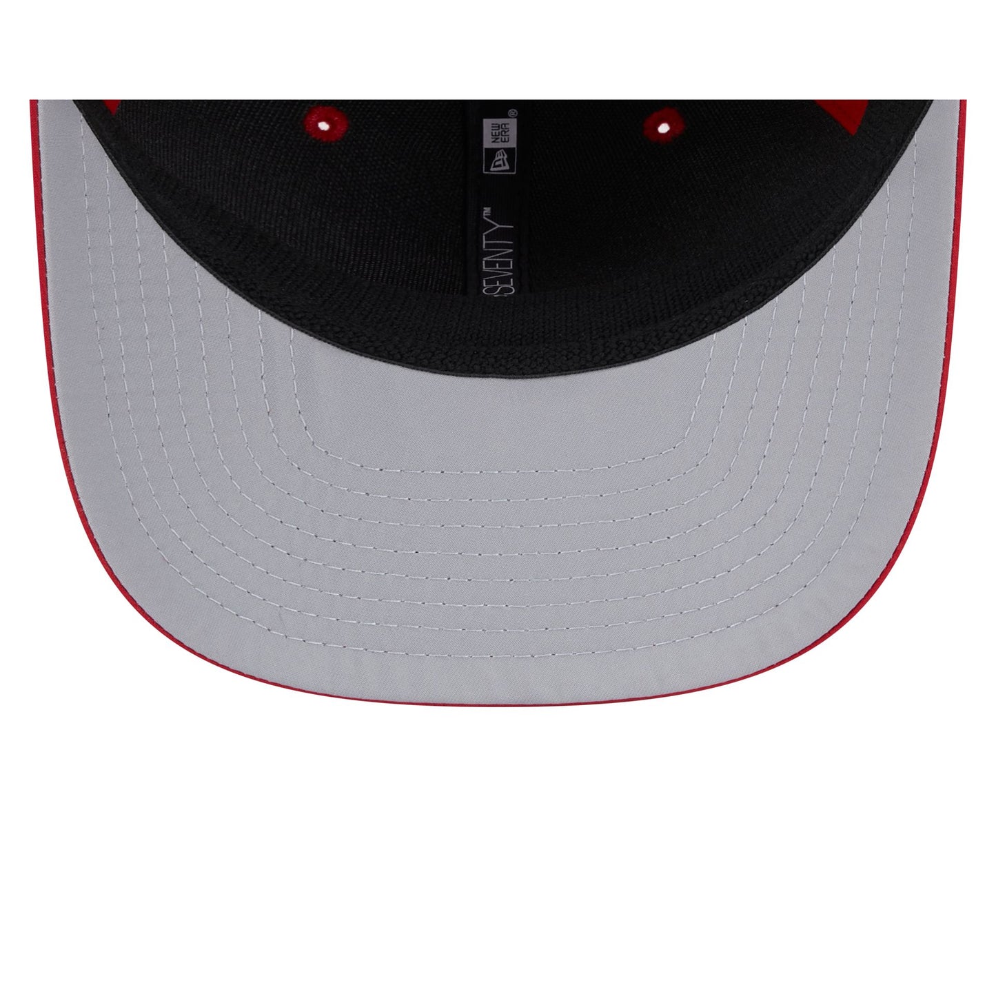 The New Jersey Devils Perform 9SEVENTY Stretch-Snap Hat features an embroidered Devils logo at the front panels with a matching New Era Flag at the left-wear side. Additional details include a gray undervisor and a snapback closure at the rear.