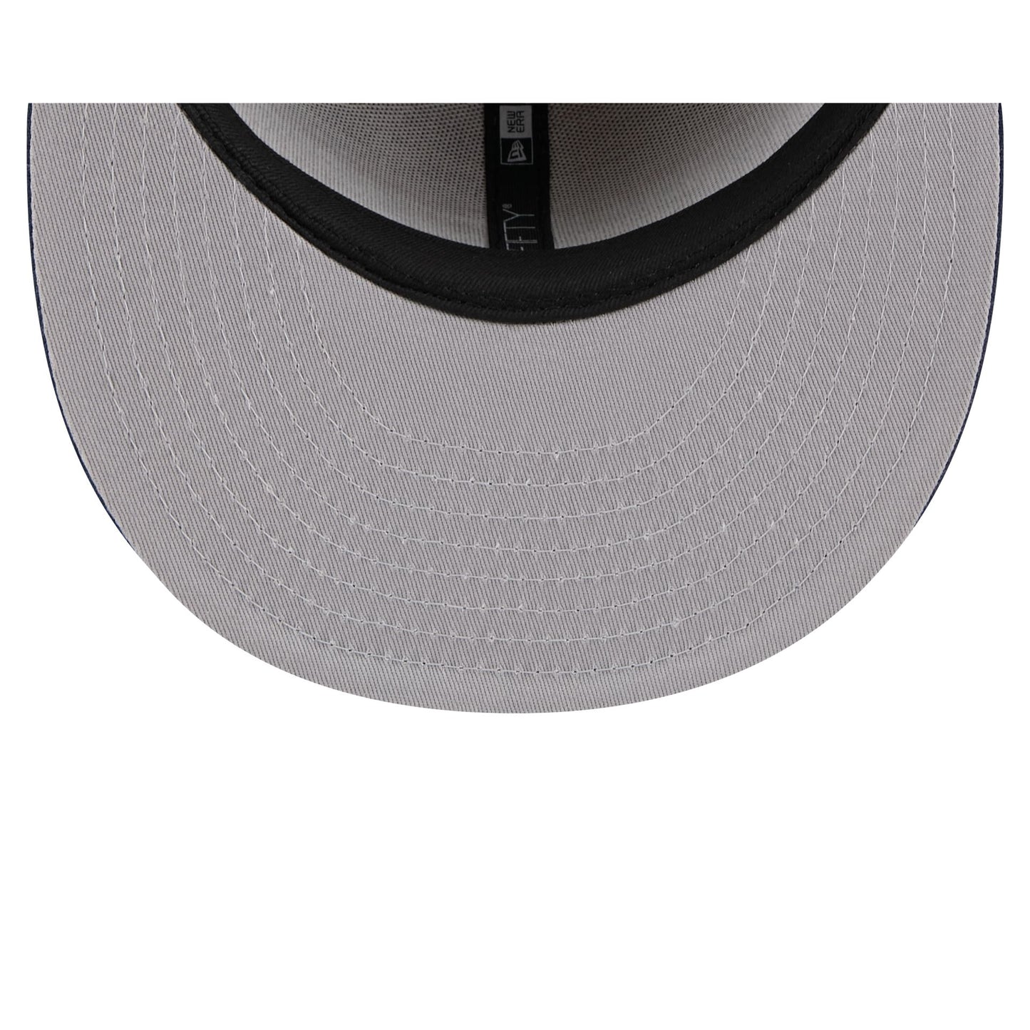 The New Orleans Pelicans 2024 Draft 9FIFTY Snapback features an embroidered Pelicans logo and team wordmark at the front panels with the official NBA Logoman above a snapback closure at the rear and a gray undervisor.