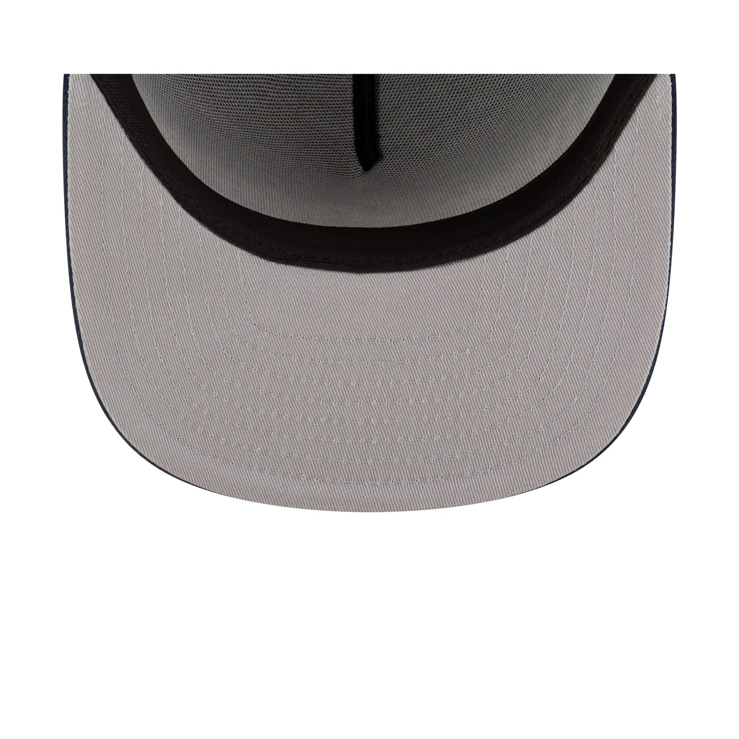 The New Orleans Pelicans Dashmark Mesh 59FIFTY A-Frame Fitted Cap features an embroidered Pelicans Dashmark Mesh wordmark at the front panels with a logo at the rear and a gray undervisor.