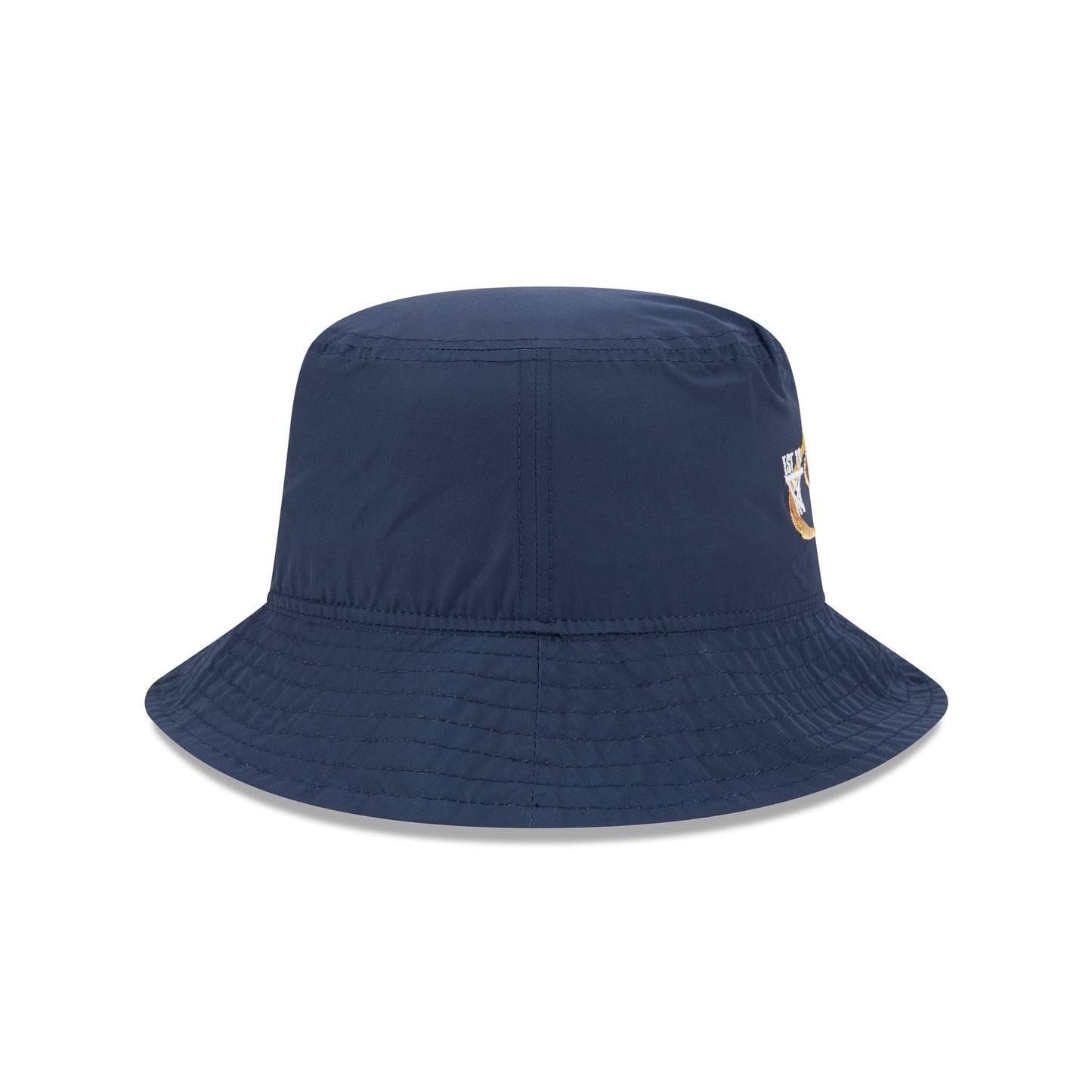 The New Orleans Pelicans Nylon Logo Bucket Hat features an embroidered Pelicans logo, establishment date, and NBA Logoman at the front.