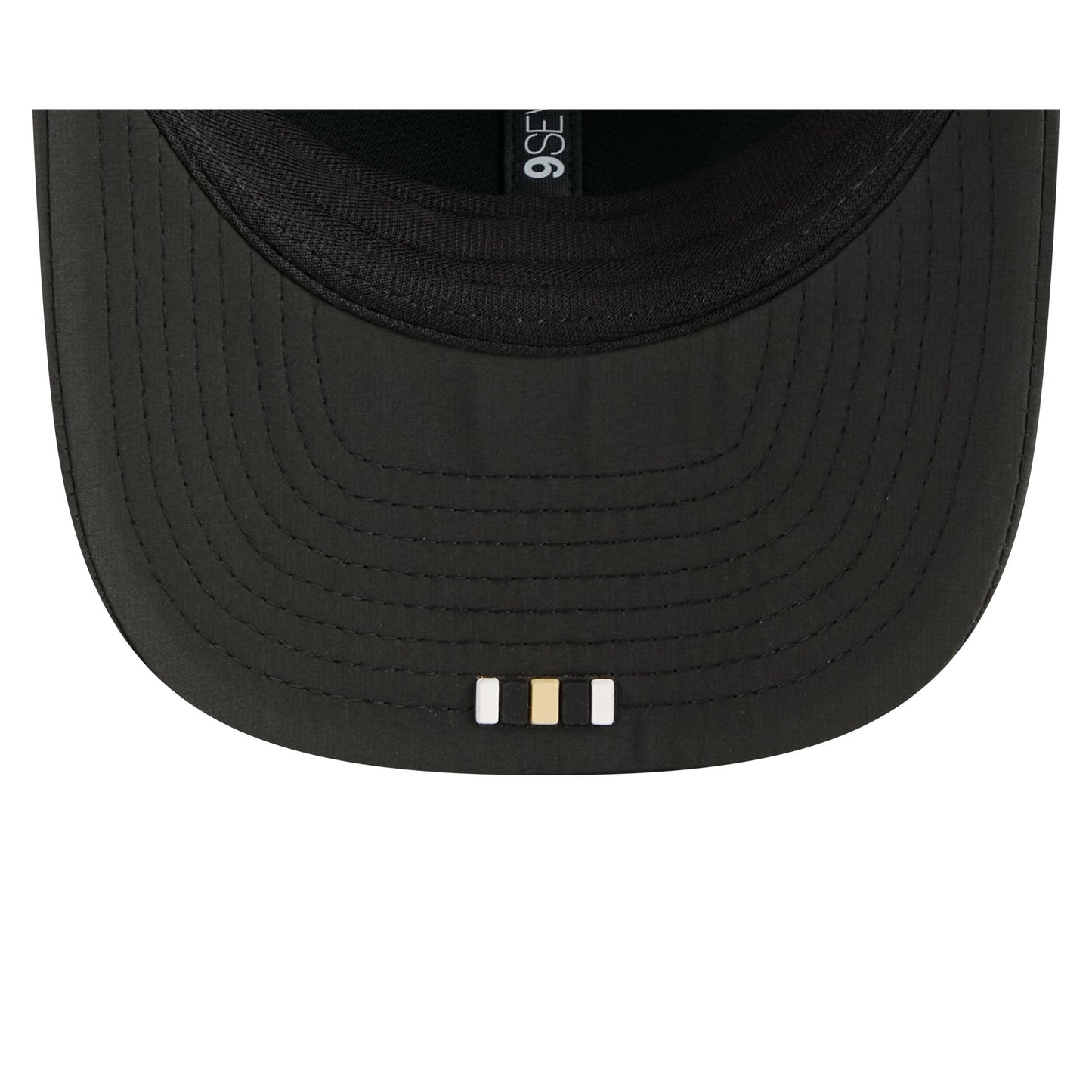 The New Orleans Saints 2025 Sideline Hot Weather 9SEVENTY Trucker features a sewn-down silicone Saints logo patch at the front panels with a water-repellent quill tech fabrication throughout and a quick-dry cushioned sweatband to absorb moisture. Additional details include the Official NFL Shield logo to the right of a soft silicone snapback closure at a light-weight mesh rear. The undervisor is accented with a silicone transfer in the team’s colors.