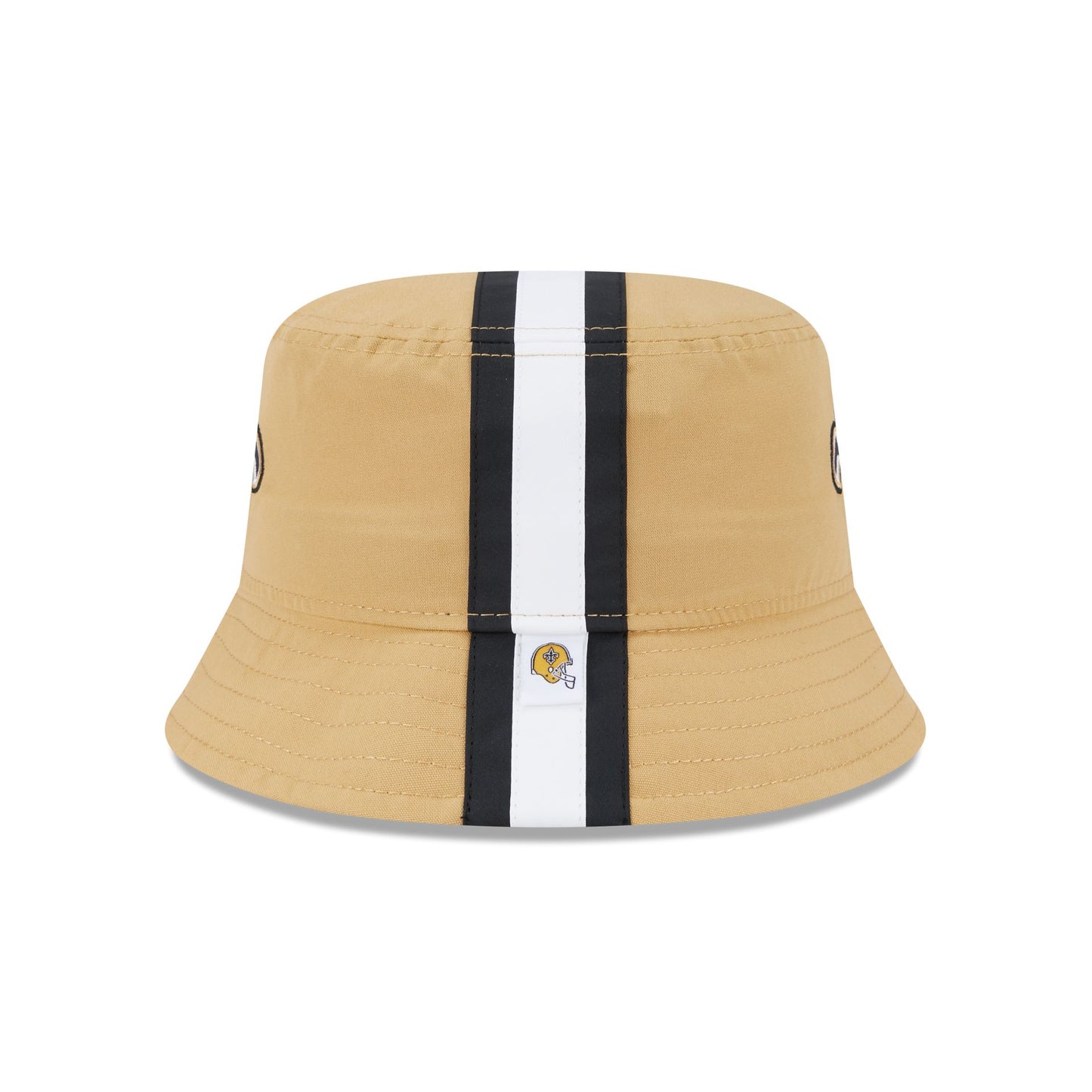 The New Orleans Saints Helmet Bucket Hat features an embroidered Saints helmet design throughout.