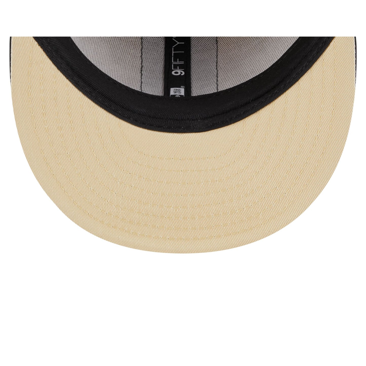 The New Orleans Saints Kids Helmet 9FIFTY Snapback features an embroidered Saints helmet design throughout the hat with a team tag on a snapback closure at the rear.