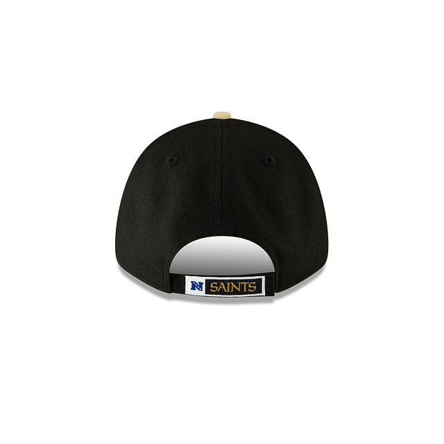 The New Orleans Saints The League 9FORTY Adjustable Cap features an embroidered Saints logo at the front panels with the conference logo and team name on an adjustable hook and loop strap at the rear.