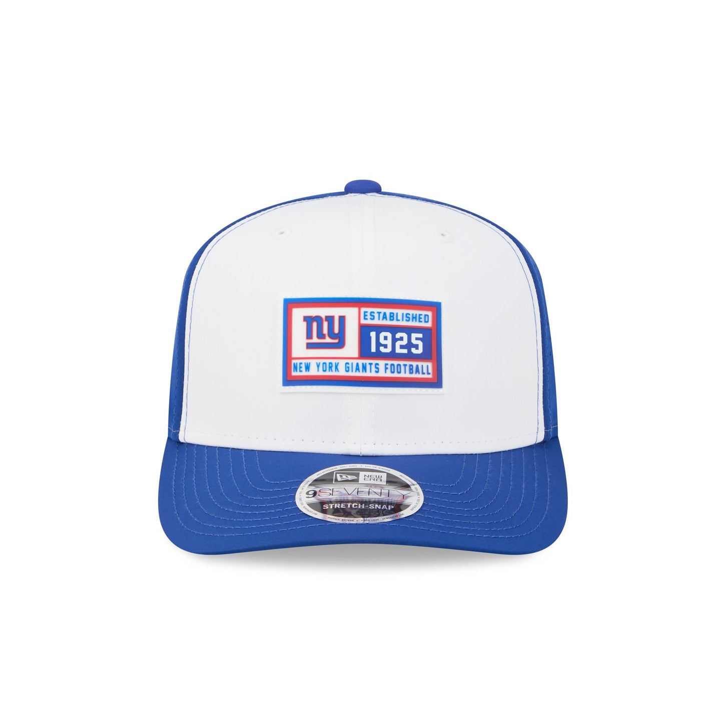 The New York Giants Est. Patch 9SEVENTY Stretch-Snap features a woven silicone Giants establishment patch at the front panels with a slant-snap closure at a performance mesh rear and a gray undervisor.
