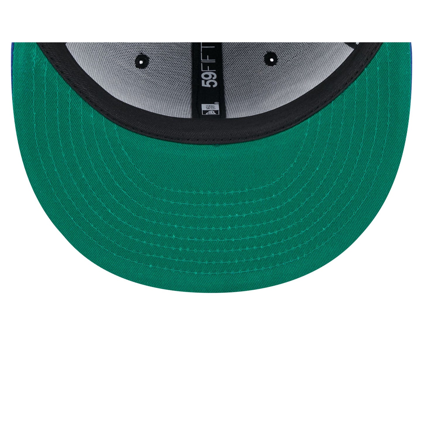 The New York Giants Faux Leather Crown 59FIFTY Fitted Cap features an embroidered Giants wordmark at the front panels with a matching NFL Shield at the rear, a blue visor, and green undervisor.