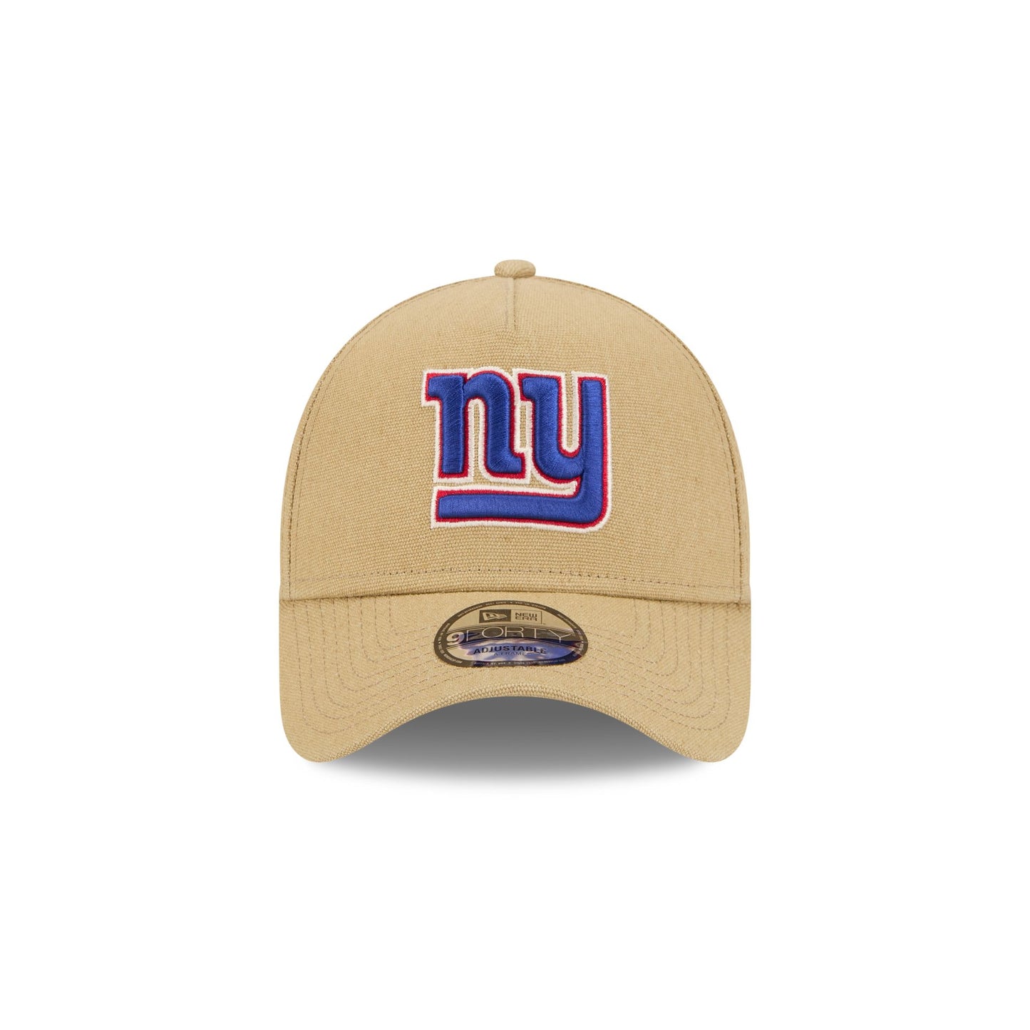 The New York Giants Logo Essentials Khaki 9FORTY A-Frame Snapback features an embroidered Giants logo at the front panels with a snapback closure at the rear.