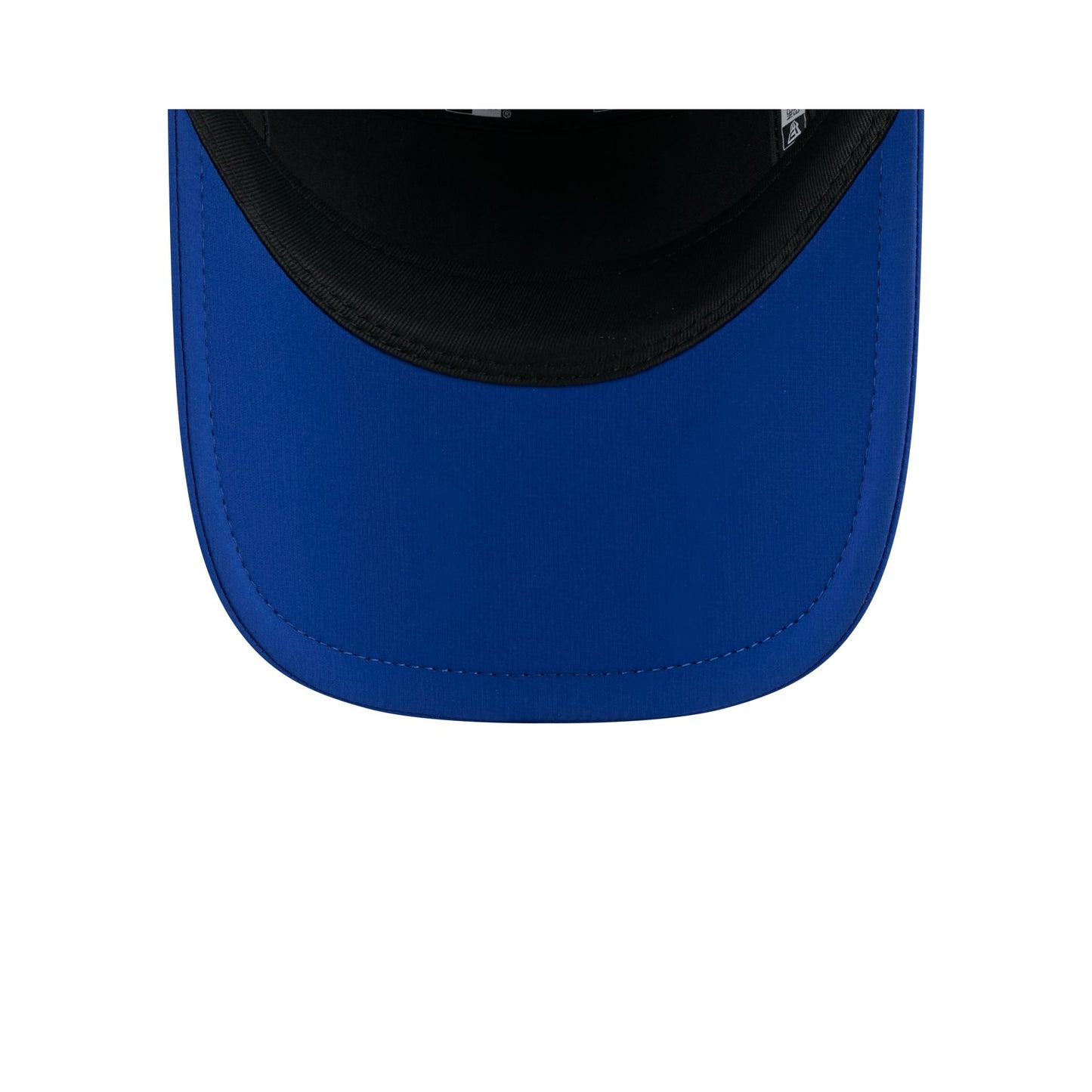 The New York Giants Poly Runner Cap features a heat sealed Giants logo at the front panels with mesh side panels. Additional details include a silicone patch above an adjustable drawstring closure at the rear.